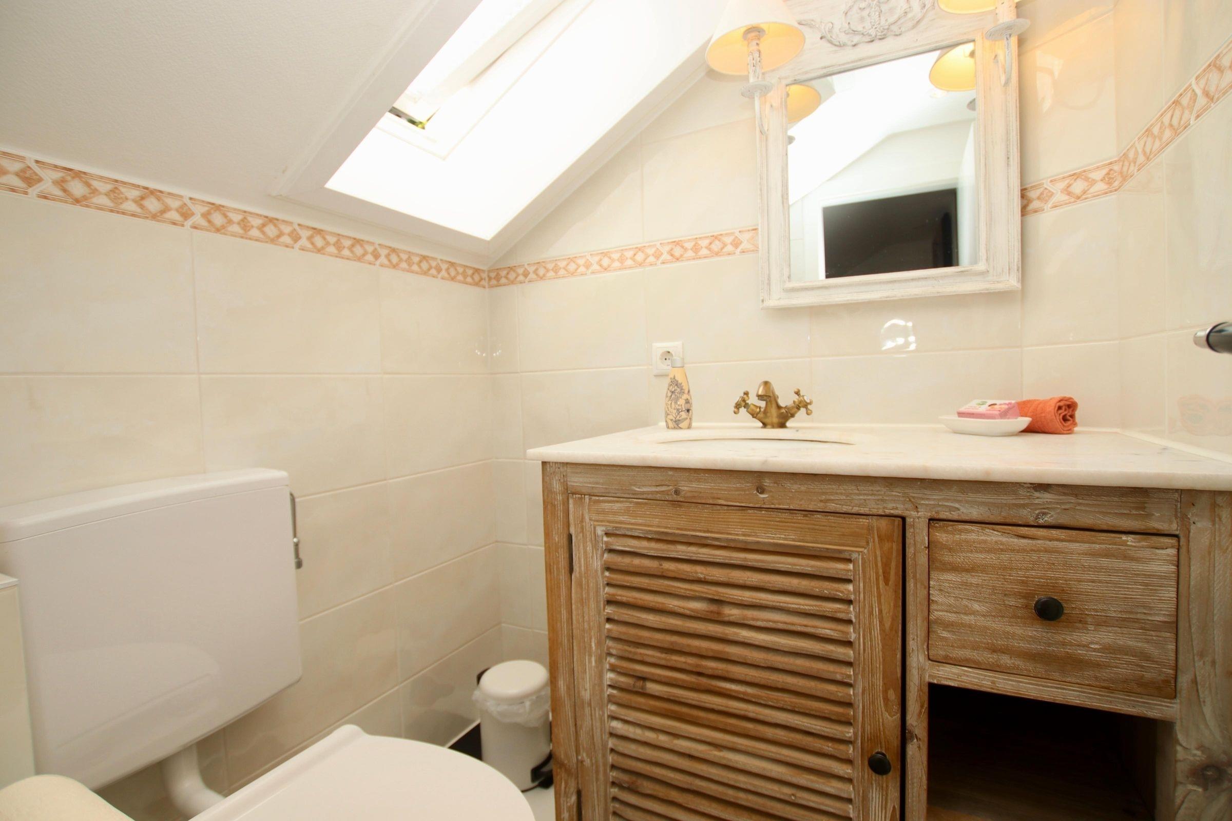 Es erwartet Sie eine helle, moderne und hochwertige Einrichtung: im Erdgeschoss befindet sich der Wohn-/Essbereich mit Kaminofen und offener Küche, ein Schlafzimmer mit Doppelbett (180x200 cm), ein Duschbad, ein Wannenbad mit Whirlpool-Badewanne, separates WC und eine Sauna. Im Obergeschoss befindet sich ein weiteres Schlafzimmer mit 2 Einzelbetten (jeweils 90 x 200cm) und ein Kinderzimmer mit Spielecke und Kinderbett (160x70 cm) .