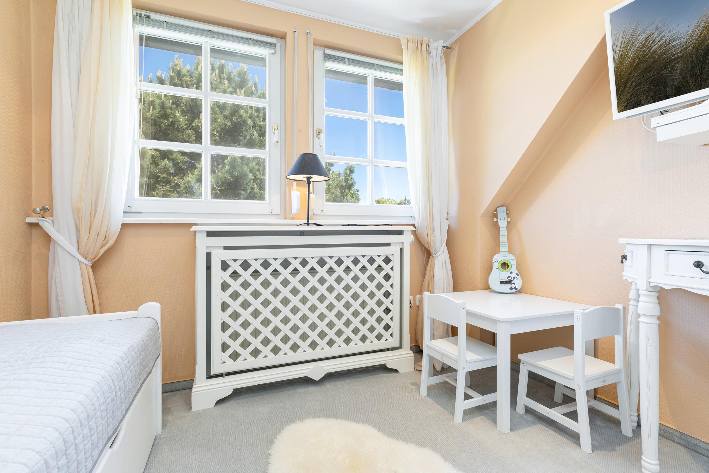 Schlafzimmer 3: 1 Einzelbett, TV, Verdunkelung: Außenrollläden