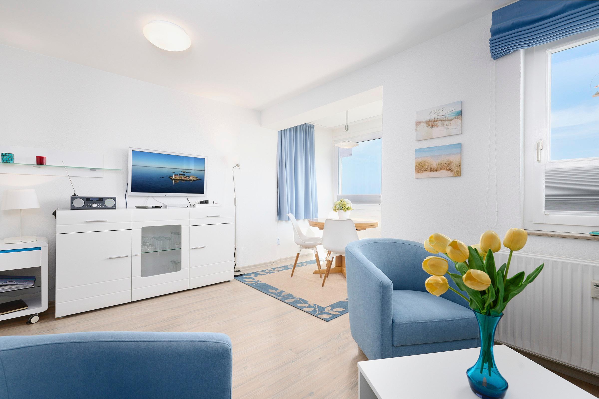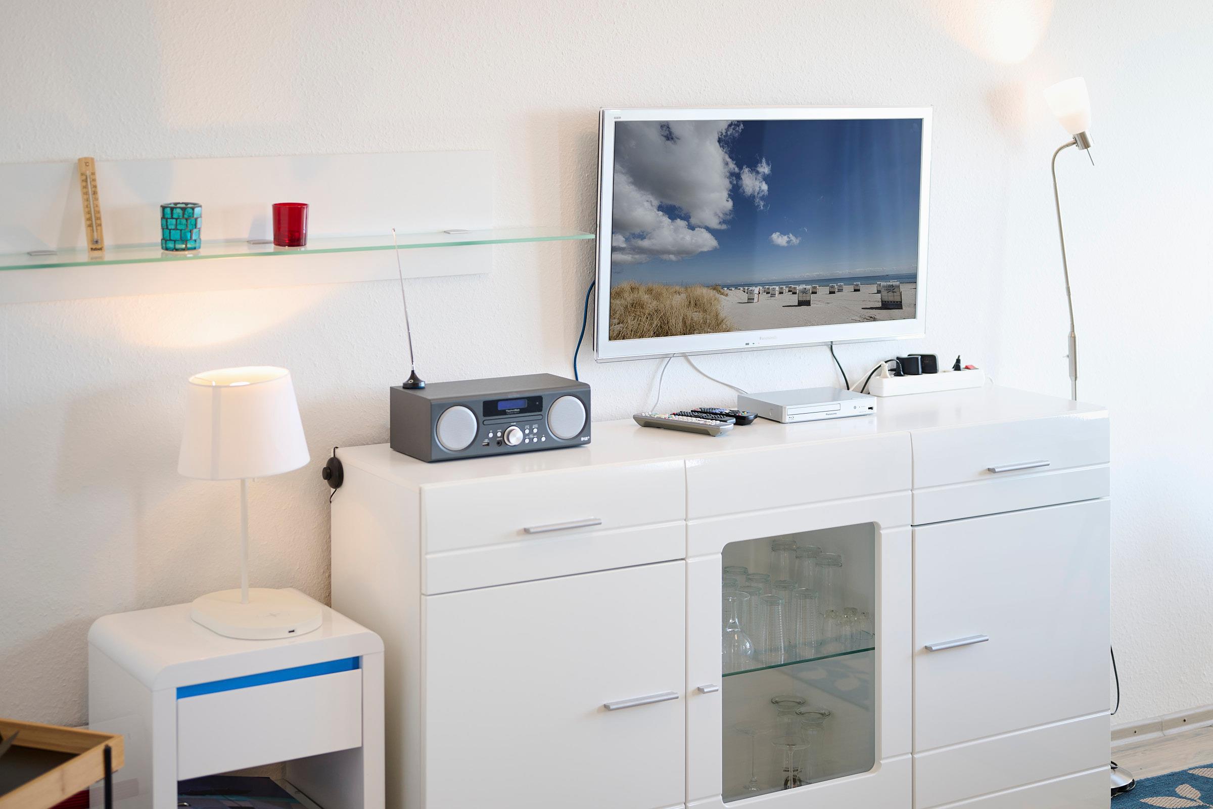 Es empängt Sie ein Wohnbereich mit Schlafcouch un offener Küche. Ein moderner Flachbildfernseher, ein DVD-Player und ein WLAN-Anschluß sorgen für Unterhaltung. Im separaten Schlafzimmer finden Sie einen erholsamen Schlaf im bequemen Doppelbett (2x 90x200 cm) und starten im Duschbad erholt in den neuen Tag.