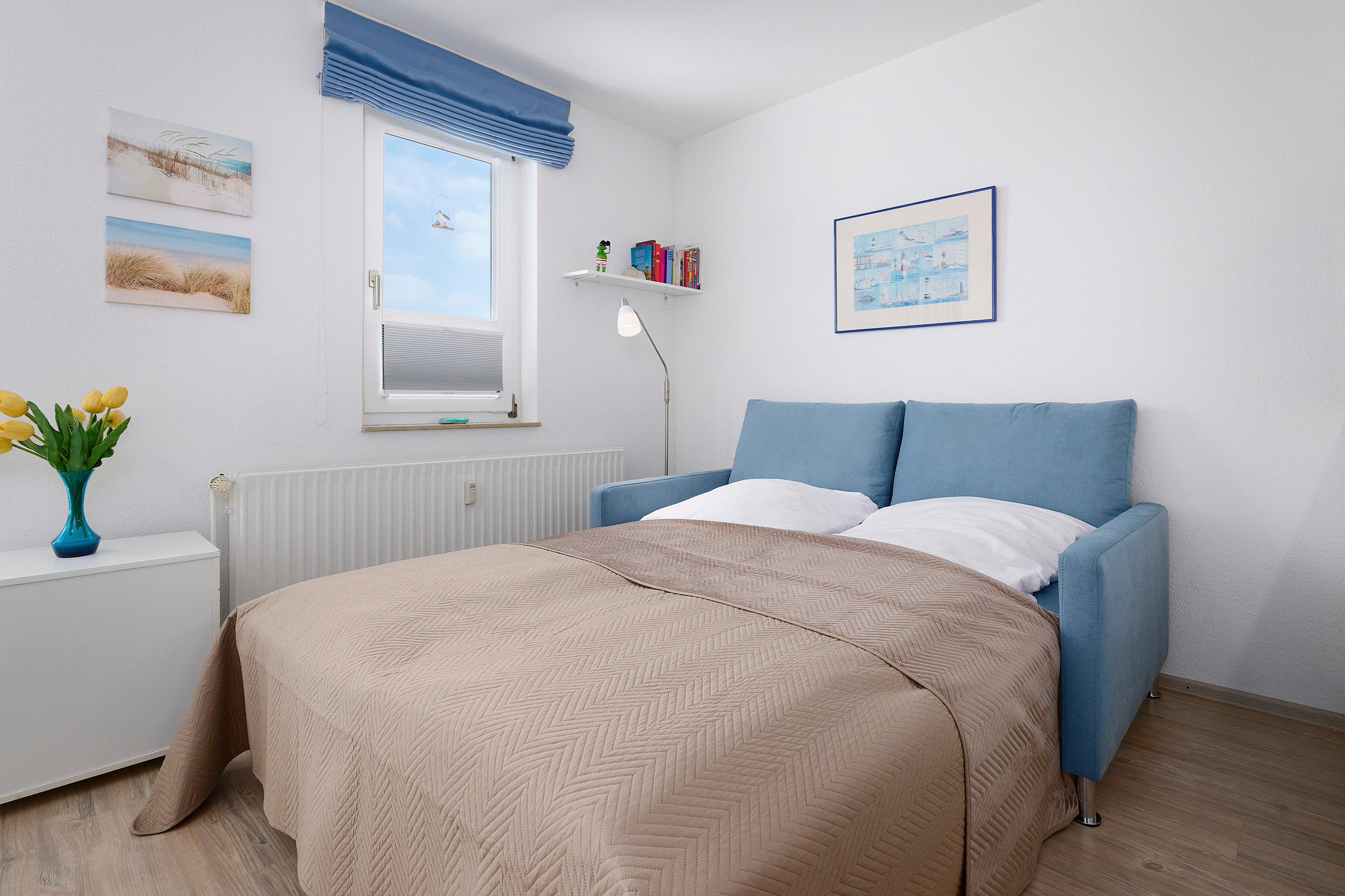 Wohn-/Schlafraum: 1 Schlafcouch, TV, Verdunkelung: Gardinen, Raffrollo