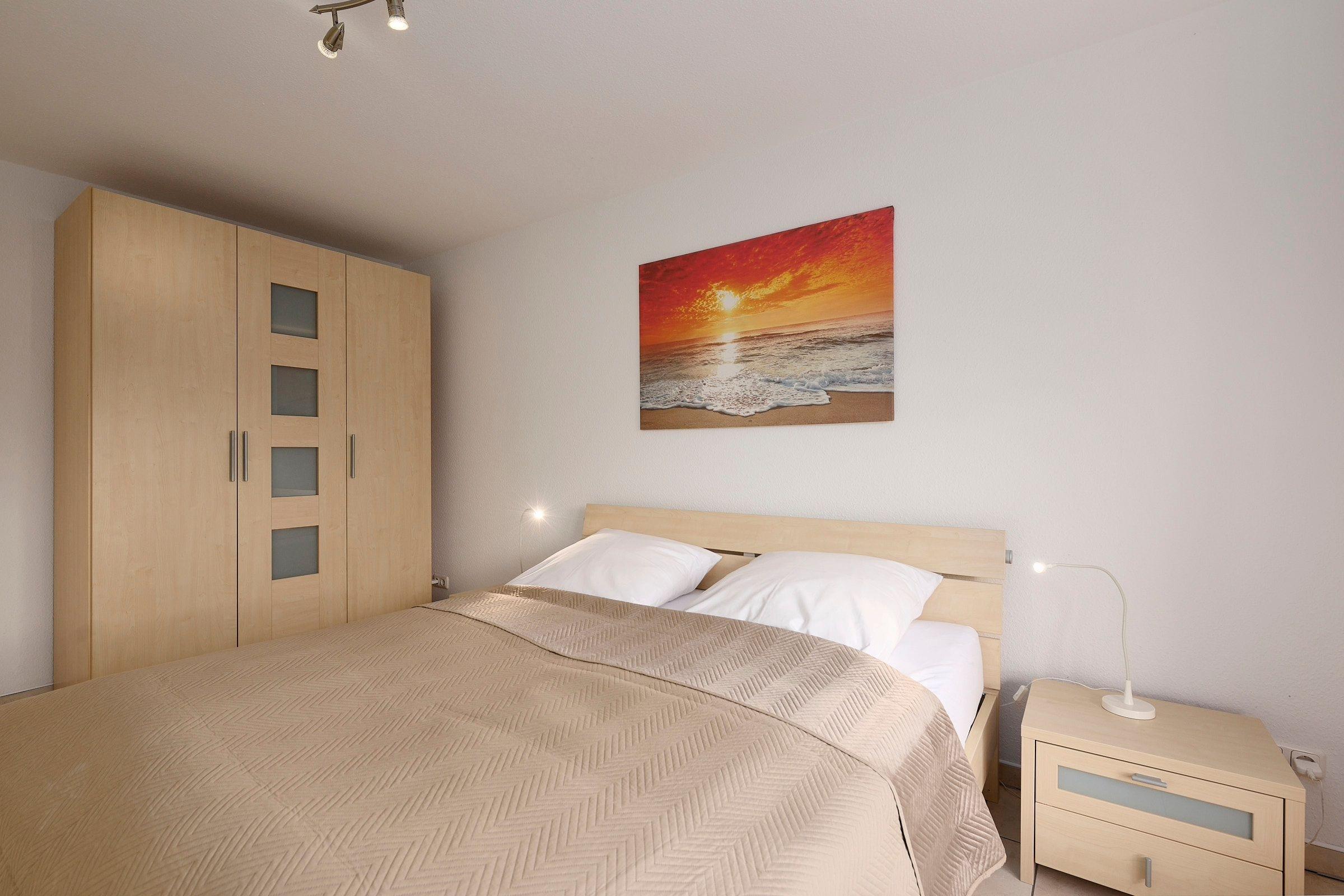 Es erwartet Sie ein großes, lichtdurchflutetes Wohnzimmer, das mit einer Couch und einem Sat-TV ausgestattet ist. Die zwei separaten Schlafzimmer sind mit einem Doppelbett und zwei Einzelbetten ausgestattet. Für unsere kleinen Gäste halten wir ein Kinderreisebett und einen Kinderstuhl kostenfrei bereit. Außenrollläden mit integrierten Fliegengittern sorgen für eine ruhige und erholsame Nacht. Das helle Bad ist mit Badewanne, separater Dusche, Handtuchwärmer, Waschmaschine und Fön ausgestattet. Die Fußbodenheizung sorgt hier für eine wohlige Wärme.