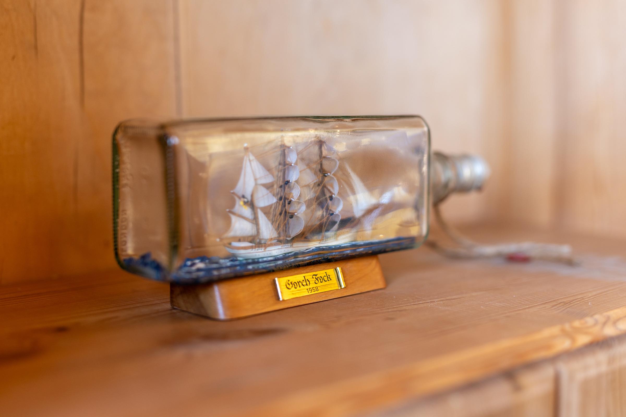 Die ca. 80 m² große Ferienwohung erstreckt sich über zwei Ebenen und verfügt über ein Duschbad, eine gut ausgestattete offene Küche, ein Schlafzimmer mit einem französischen Bett (160x200 cm) und im oberen Bereich über zwei zusätzliche Einzelbetten. Vom Wohnbereich mit einem großen Sofa und einem Sessel für gemütliche Abende können Sie direkt auf dem Balkon treten. Außerdem erwartet Sie im oberen Bereich eine Sessel-Lounge für geselliges Beisammensein. Kostenloses WLAN ist hier inklusive.