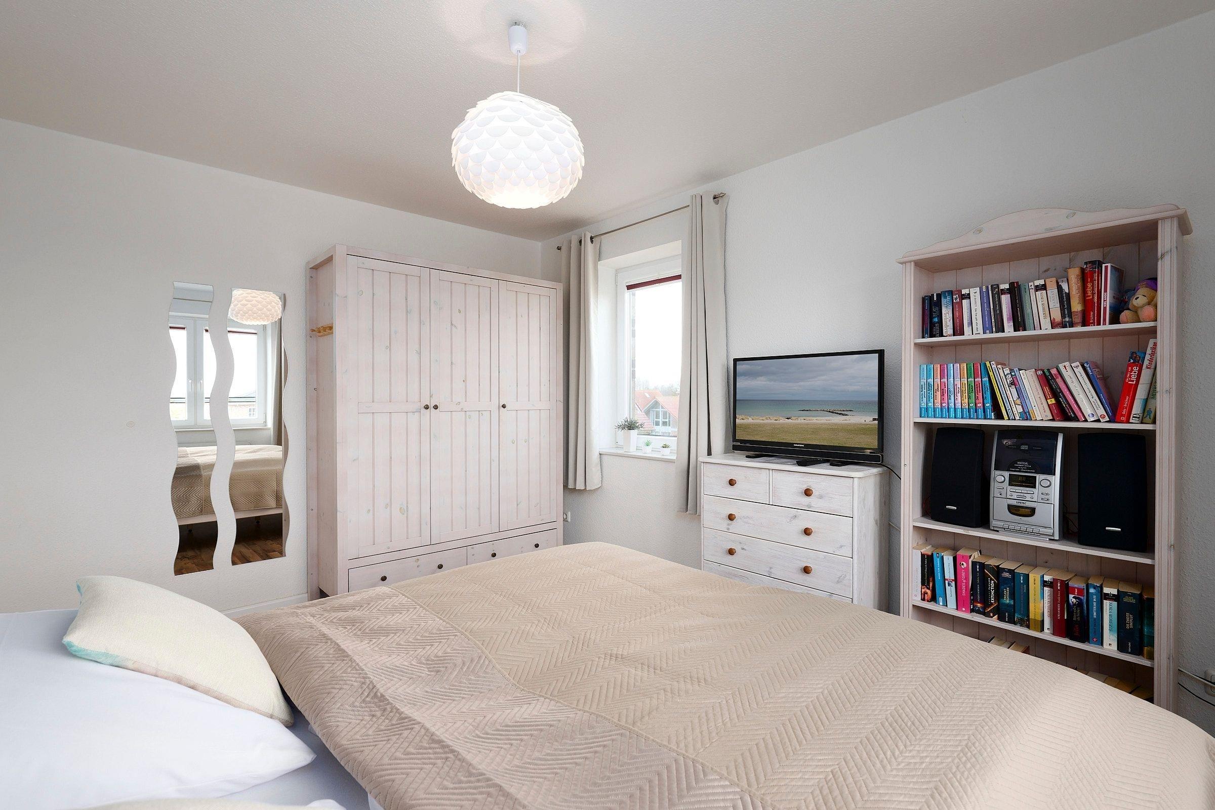 Schlafzimmer 2: 1 Doppelbett (2x 90x200 cm), TV, Kleiderschrank, Verdunkelung: Plissees, Gardinen