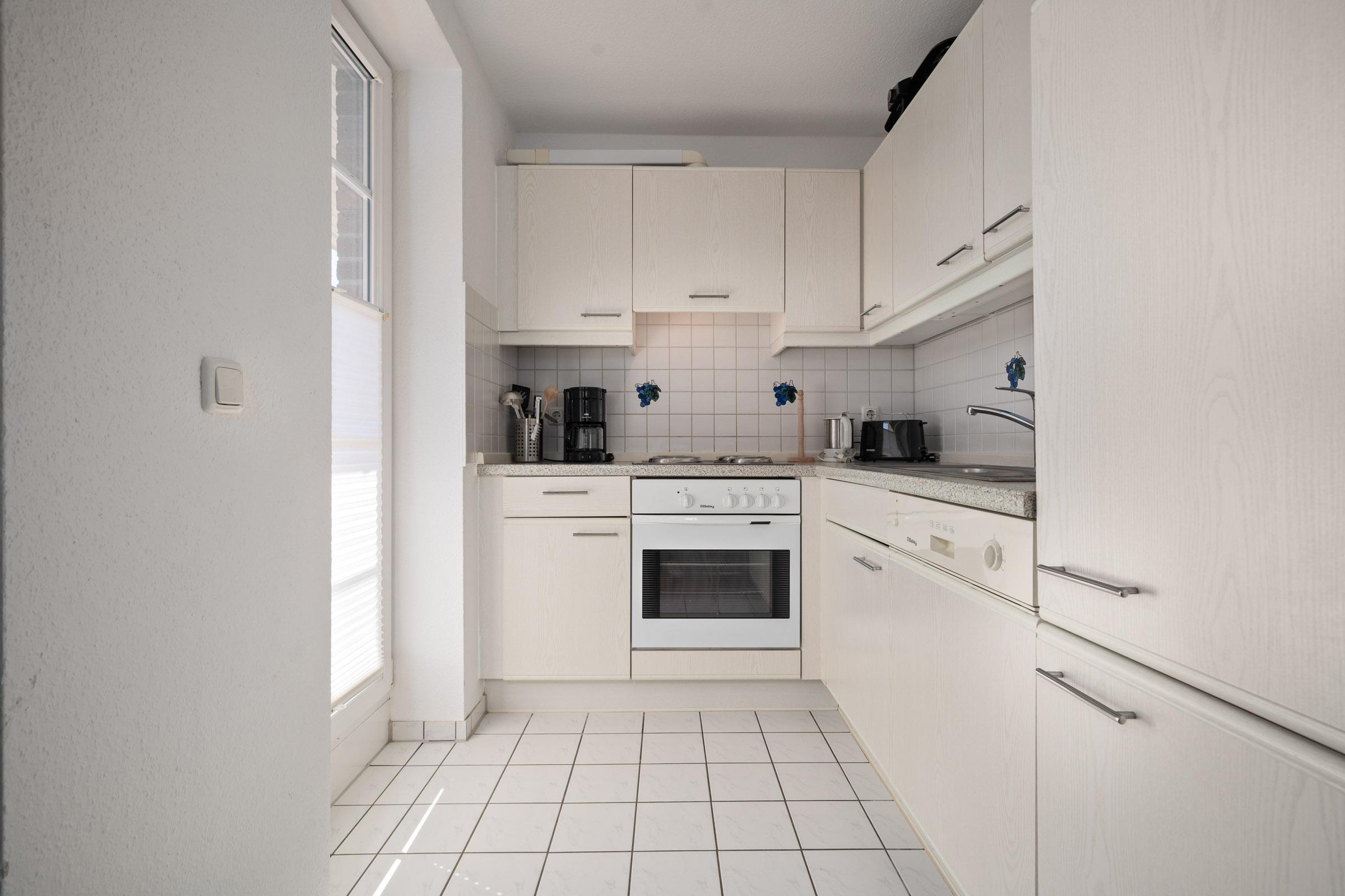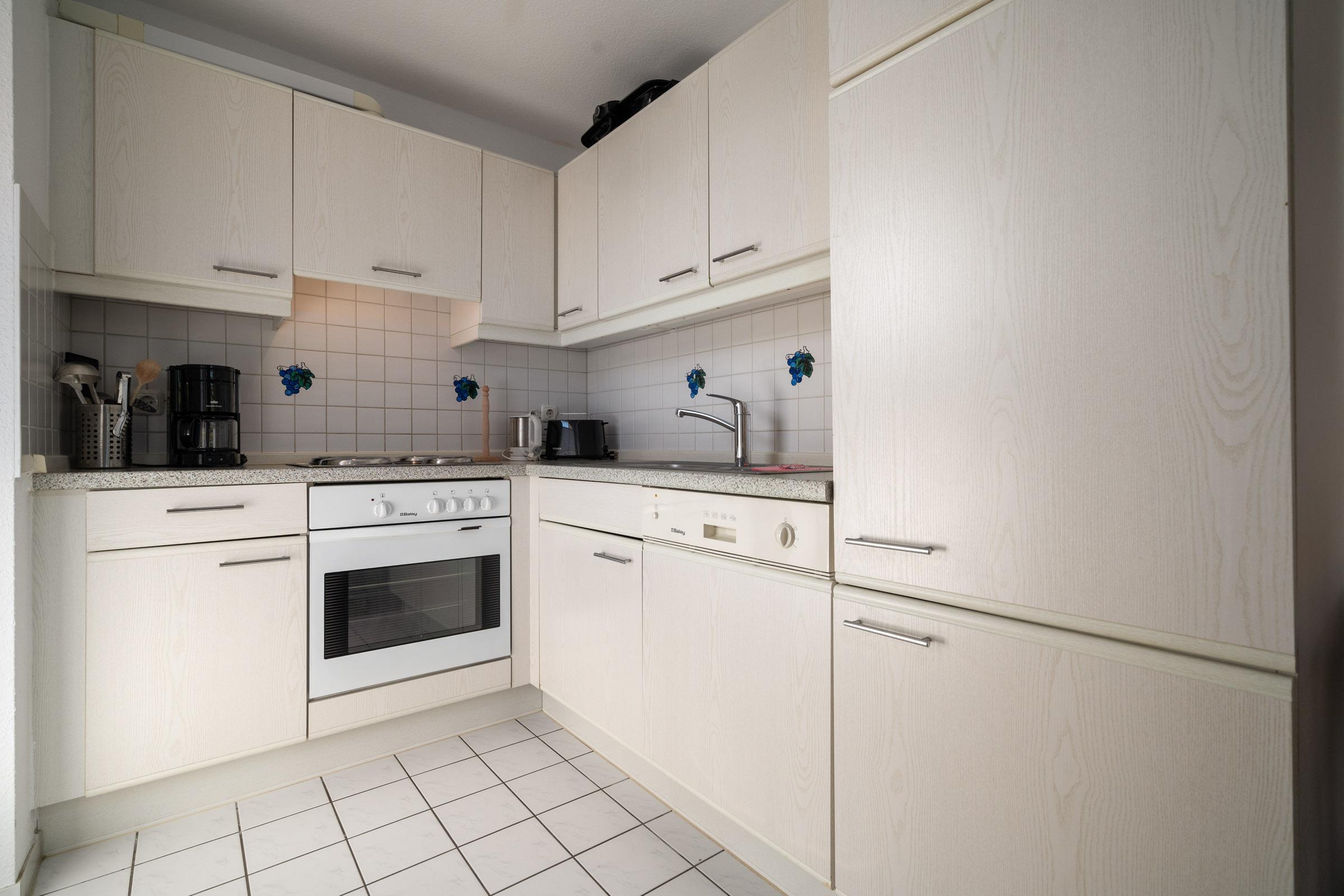 Das helle Wohnzimmer mit Essbereich und der offenen Küche, dem Duschbad und dem Balkon befindet sich im 1. OG. Lauschen Sie von Ihrem Balkon aus dem Meeresrauschen und lassen den Tag gemütlich bei einem Glas Wein ausklingen.