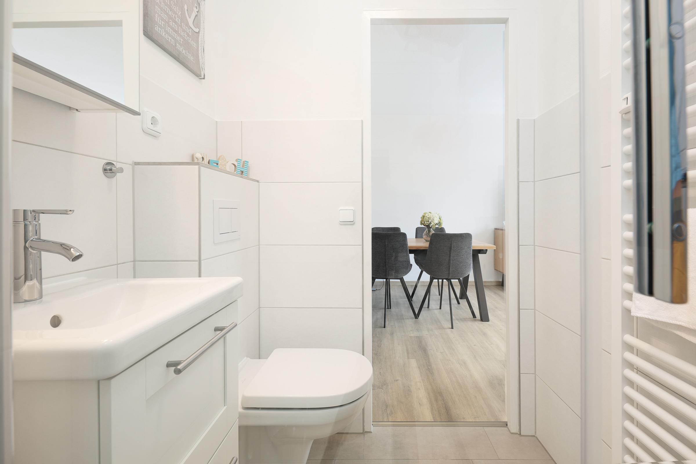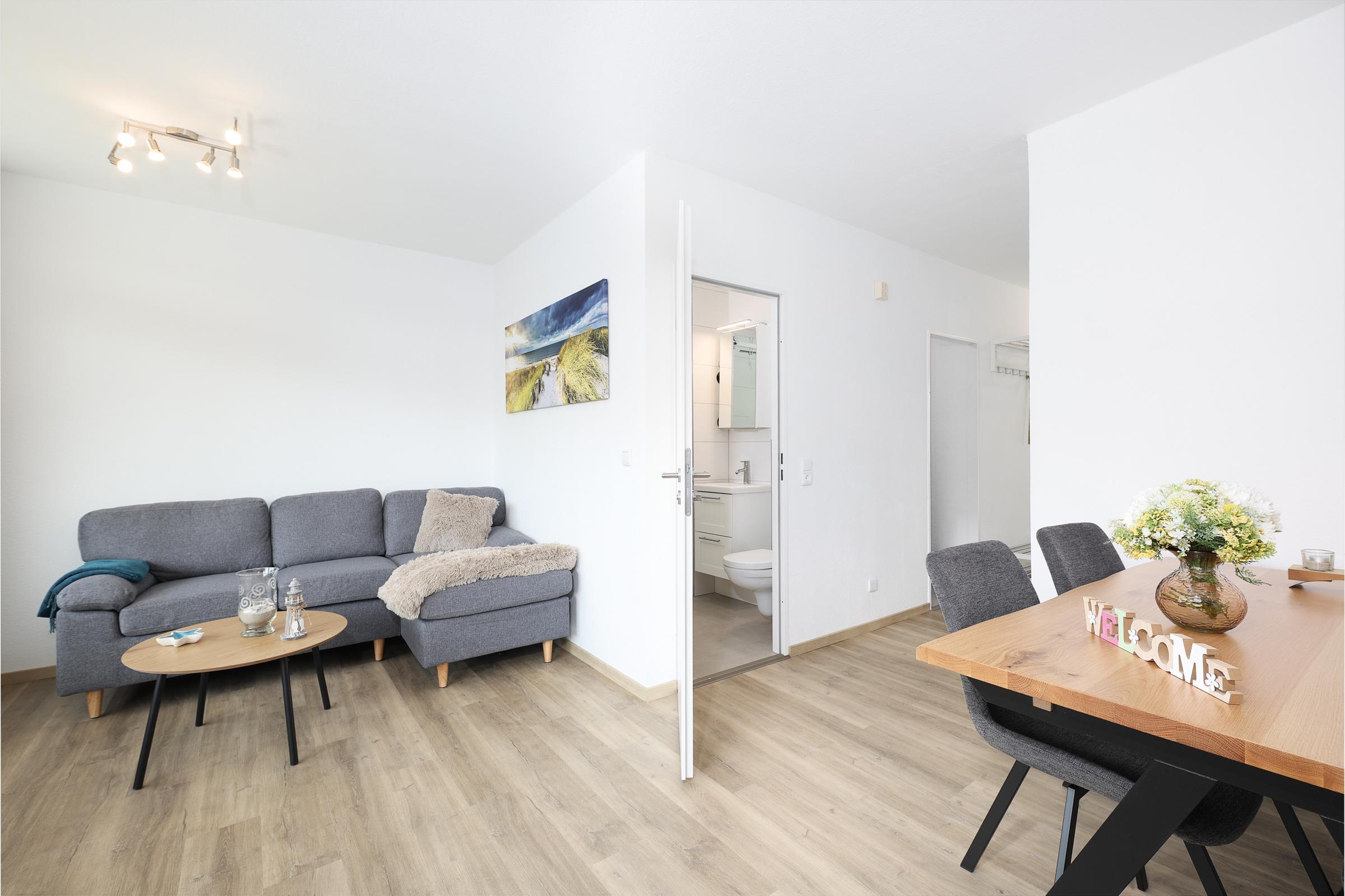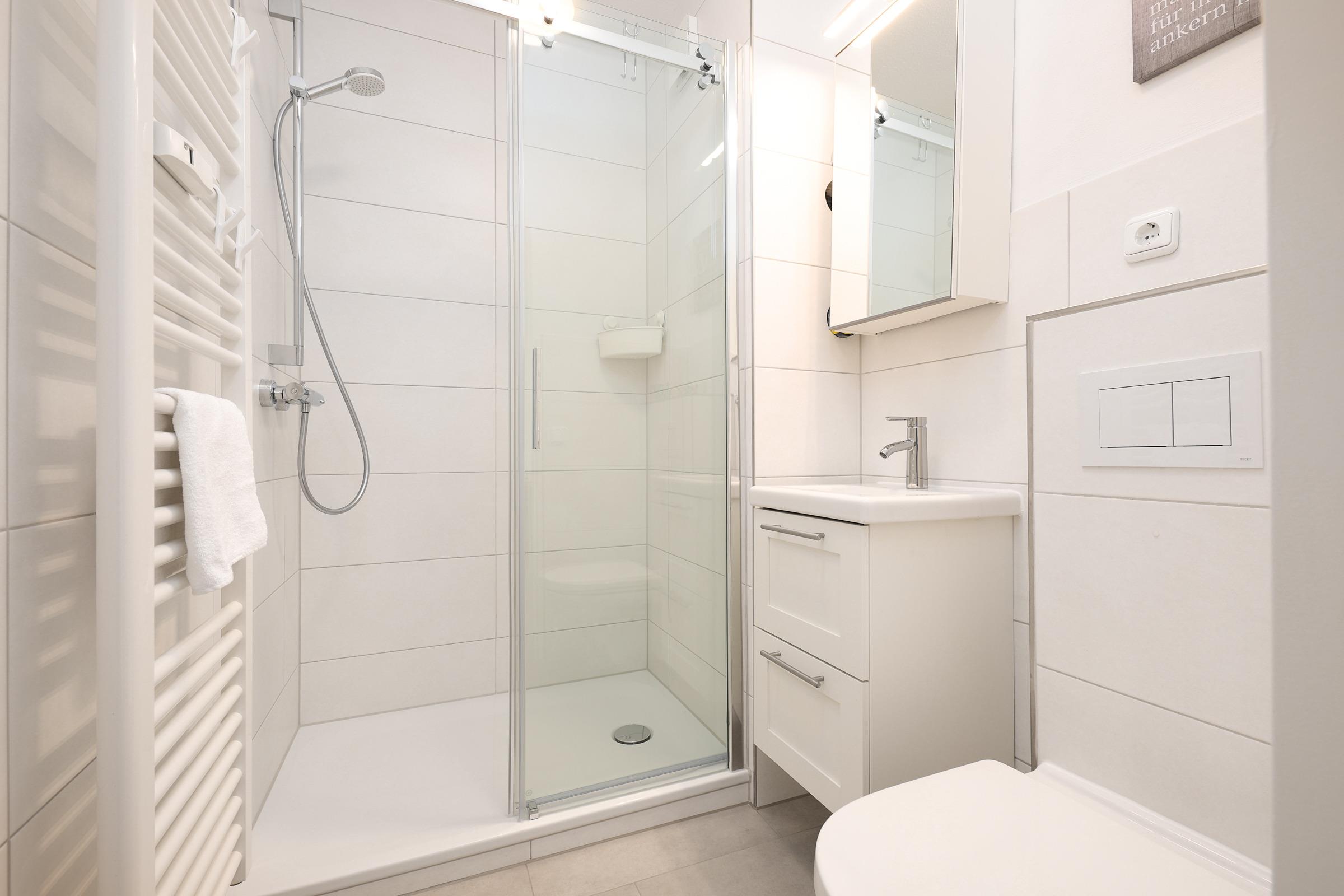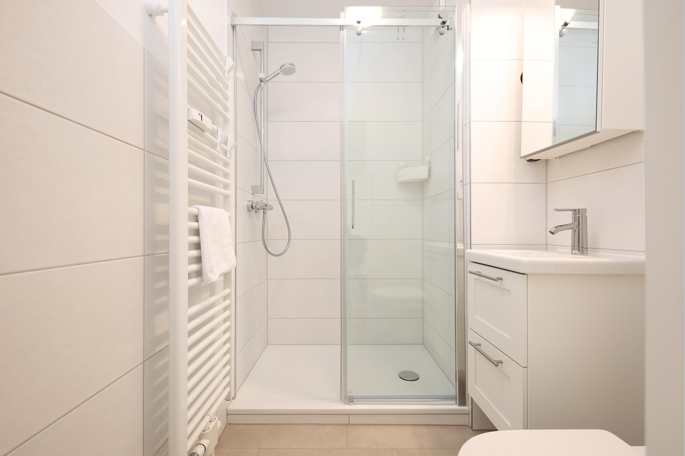 Der Wohnbereich, ausgestattet mit einen Flachbildschirm, verfügt über eine schöne Essecke und ein großes gemütliches Sofa. WLAN ist selbstverständlich in allen Räumen verfügbar. Das erste Schlafzimmer ist mit einem Dooelbett (140x200 cm) und einem Kleiderschrank ausgestattet, während das zweite Schlafzimmer über zwei Einzelbetten (je 90x190 cm) verfügt. Das Badezimmer überzeugt mit einer großen Dusche. Somit können Sie den Tag erfrischend starten.