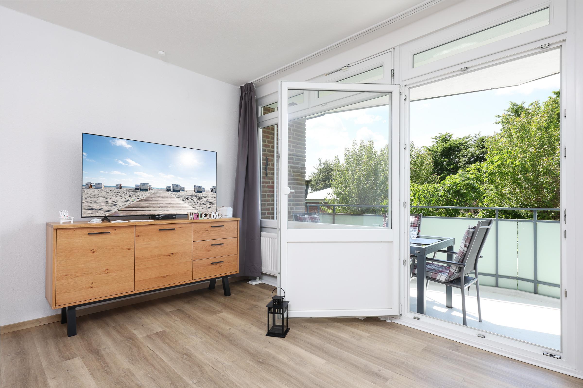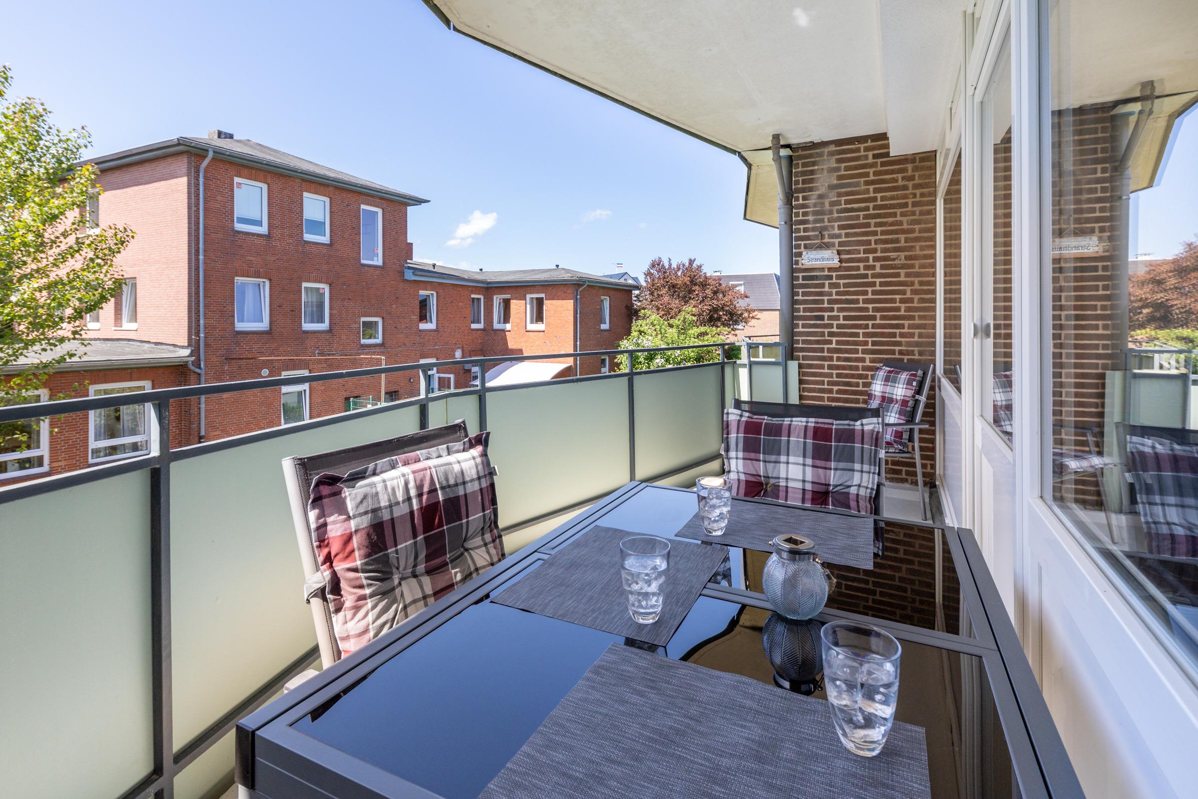 Gemütliche Ferienwohnung mit Balkon und seitlichem Meerblick am Schönberger Strand.