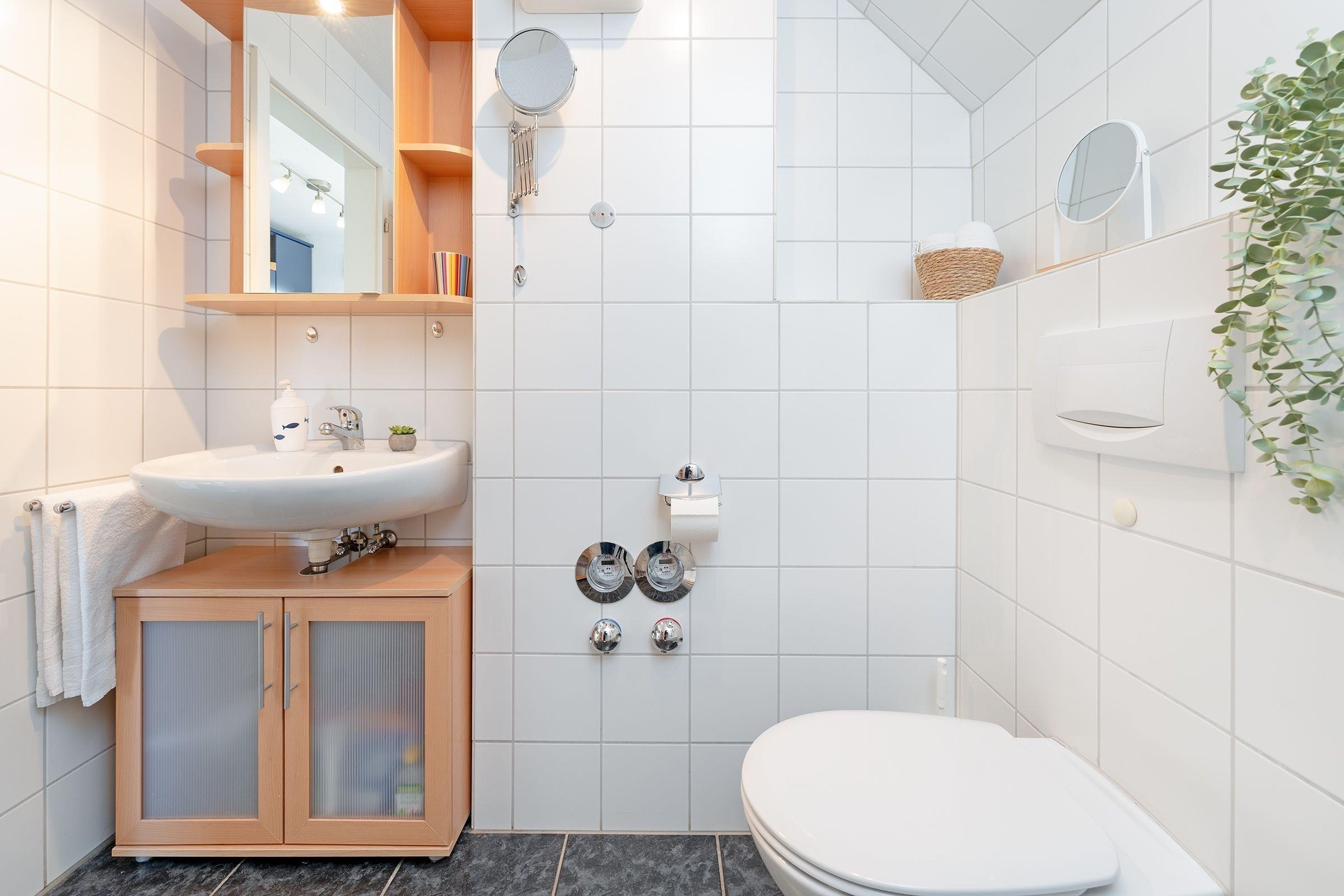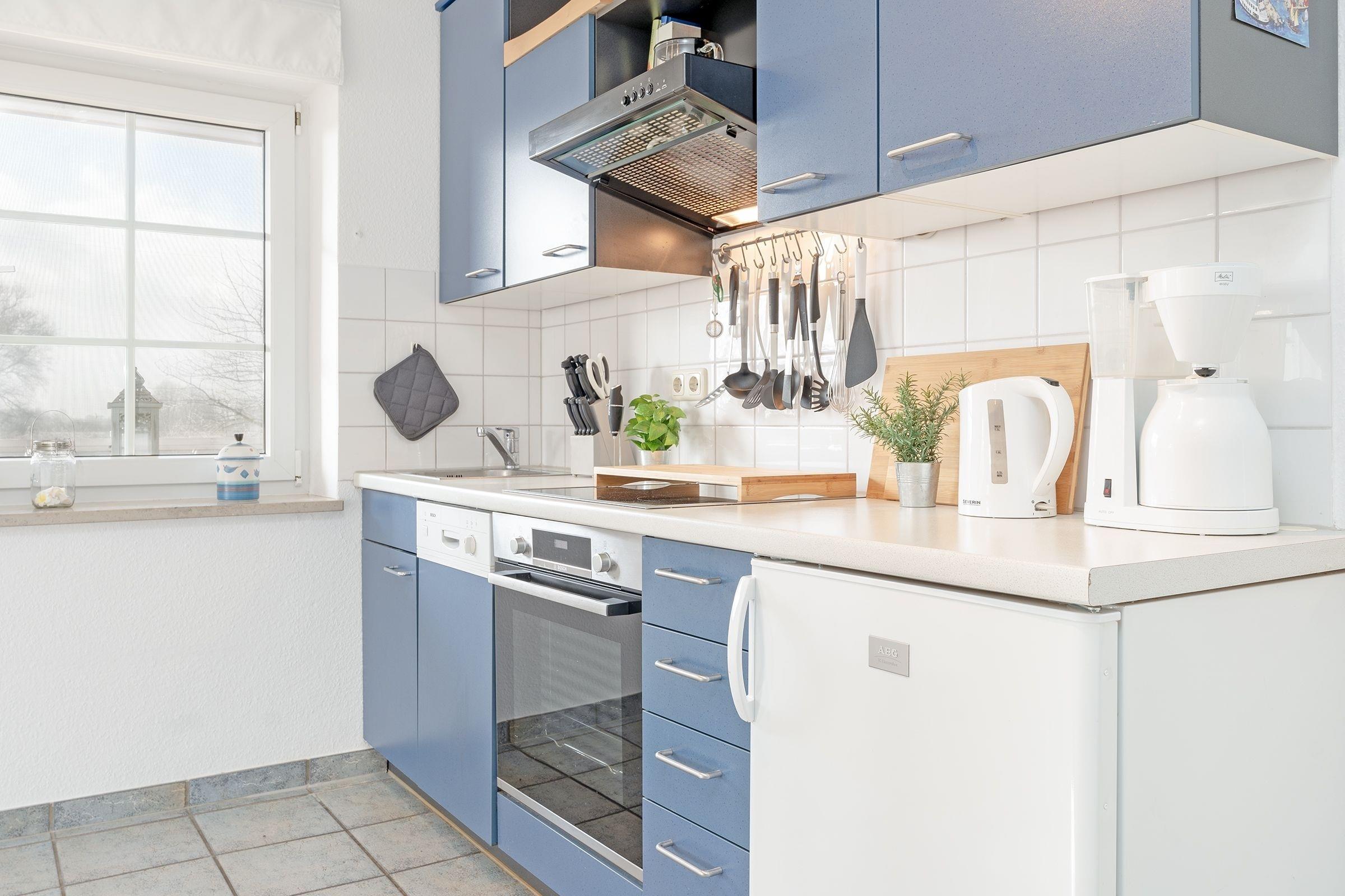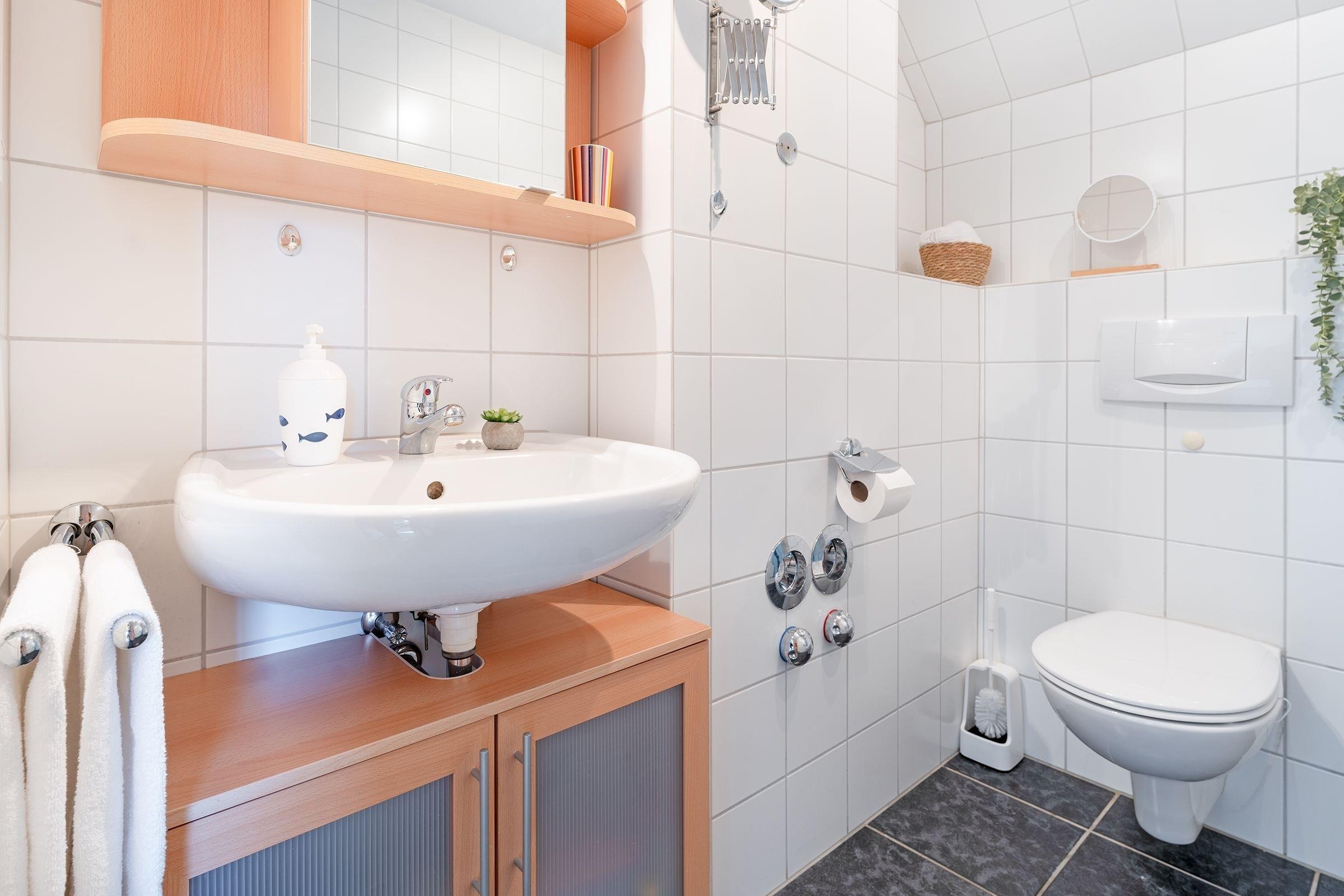 Nur rund 250 Meter vom Strand entfernt lädt Sie die zauberhafte Ferienwohnung Strandblume mit einem gemütlich eingerichteten Wohnbereich zum Entspannen ein. Vom möblierten Balkon aus haben Sie einen schönen Blick ins Grüne – und können die gesunde Seeluft genießen. Wie wäre es mit einem Rezept aus der Region? Die moderne, zum Wohnbereich hin offene Küche ist mit Induktionsherd und Geschirrspüler sehr gut ausgestattet und sorgt sicher für Freude beim Kochen. In dem einen Schlafzimmer steht ein Doppelbett (2x 90x200 cm) für einen erholsamen Schlaf bereit, in dem anderen befinden sich 2 Einzelbetten (je 90x200 cm), die auch zu einem Doppelbett zusammengeschoben werden können. Beide Räume verfügen jeweils über Rollo und Fliegengitter. Das innenliegende Duschbad punktet mit einer angenehmen Fußbodenheizung. Für Unterhaltung sorgen der kostenfreie WLAN-Zugang sowie eine Marshall Bluetooth-Box. Ein Gemeinschaftsgarten mit Tischtennisplatte runden das Angebot ab.