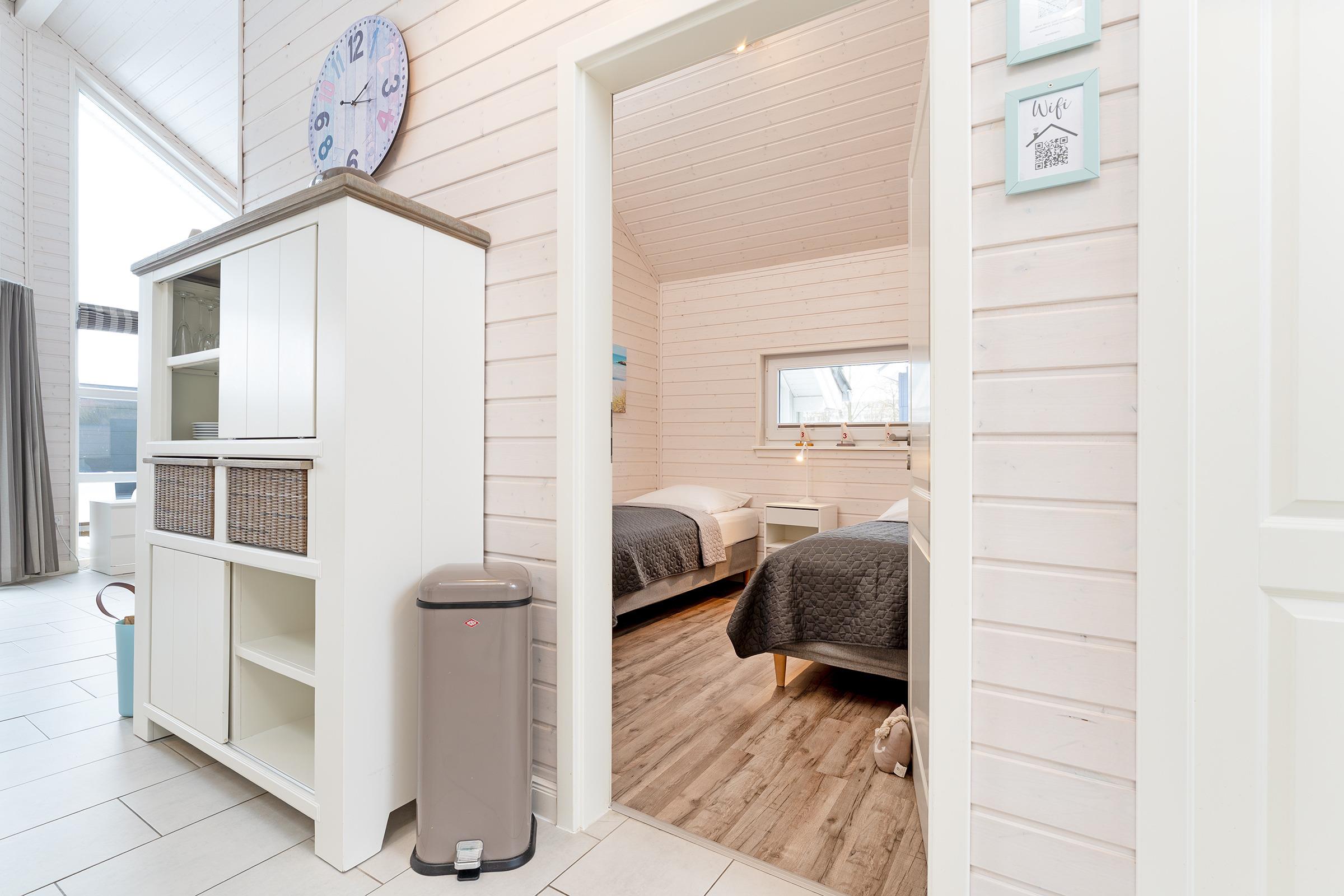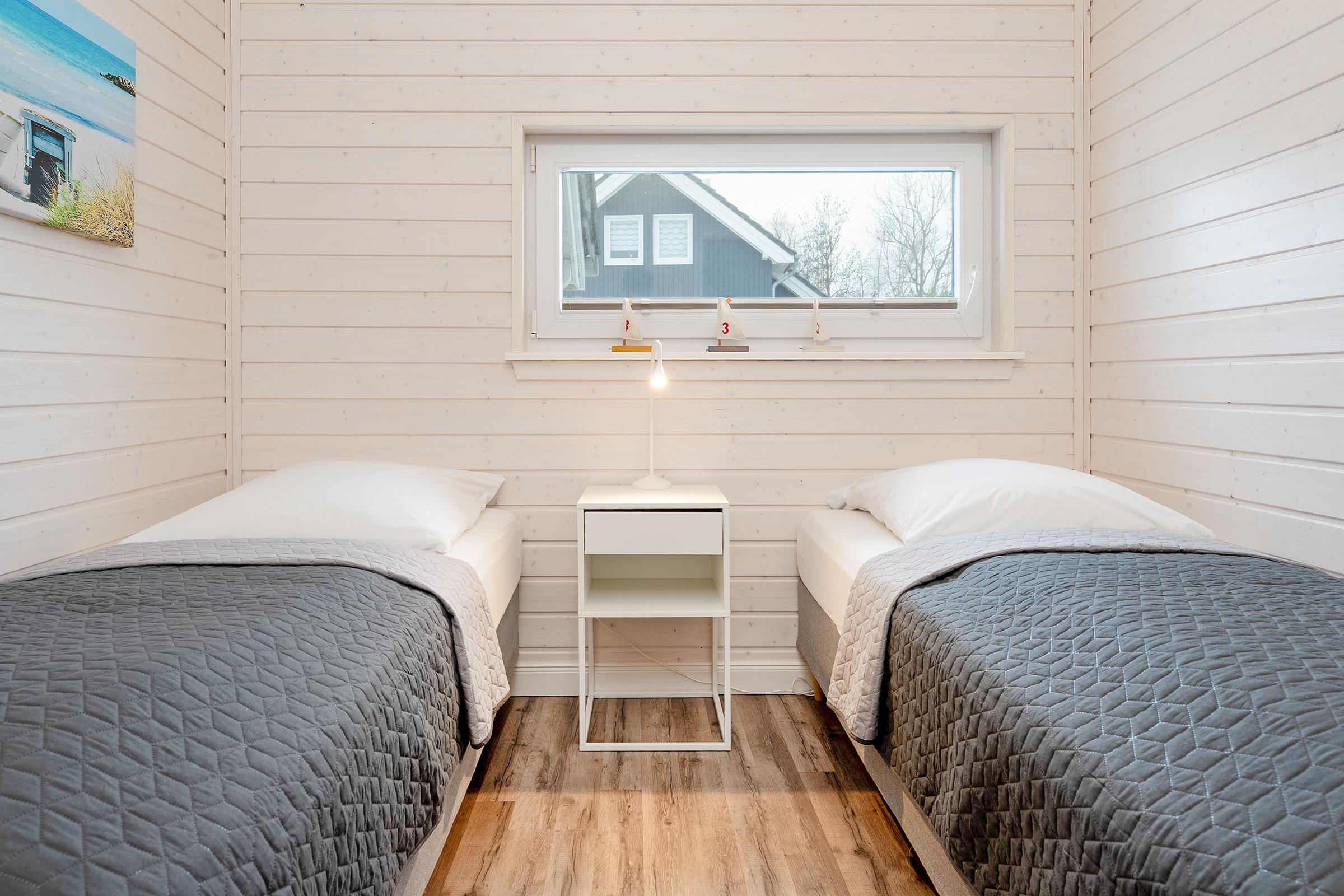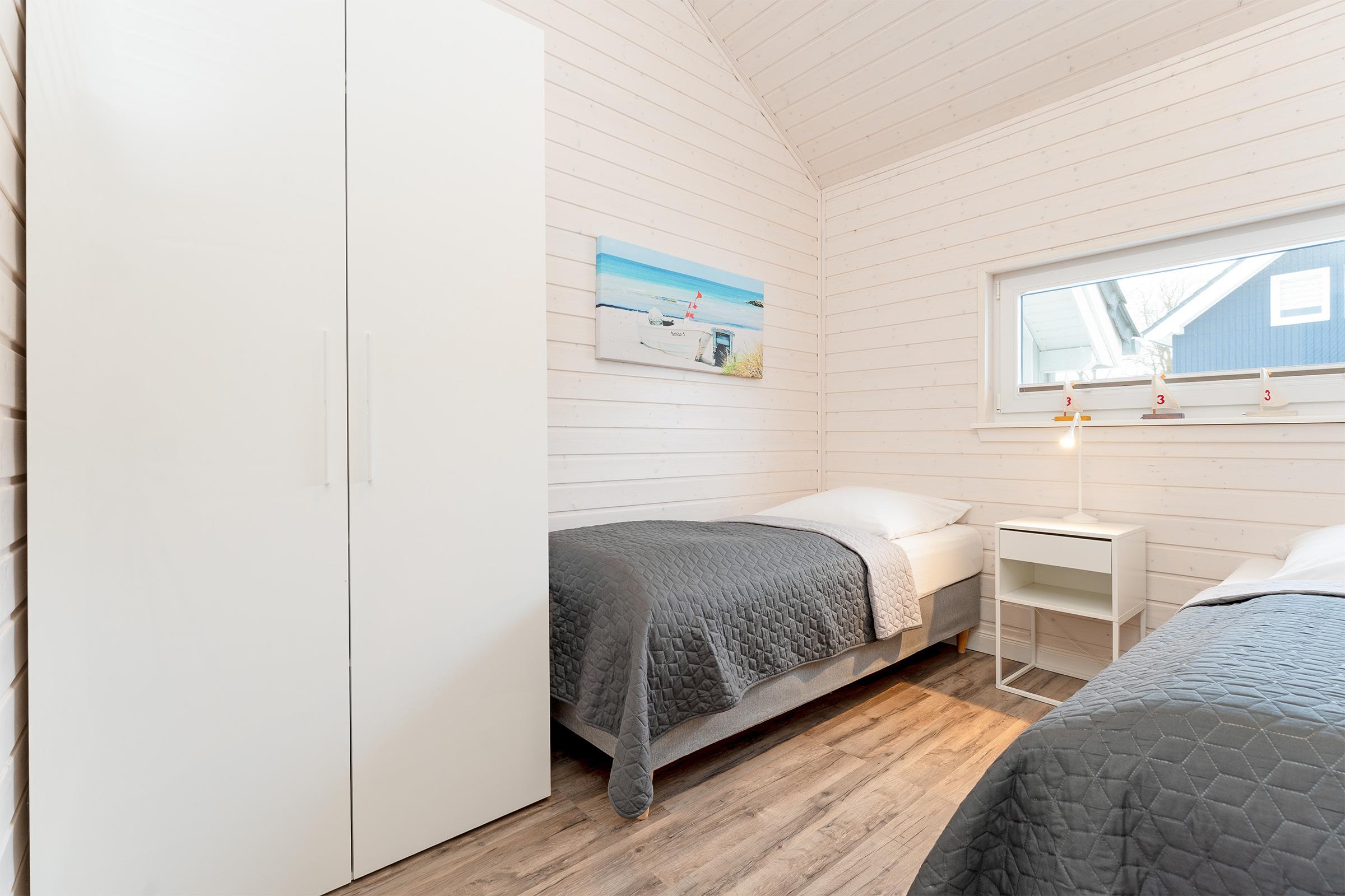 Schlafzimmer 3: 2 Einzelbetten (je 90x200 cm), Kleiderschrank, Verdunkelung: Plissee, Platz für ein Babybett vorhanden