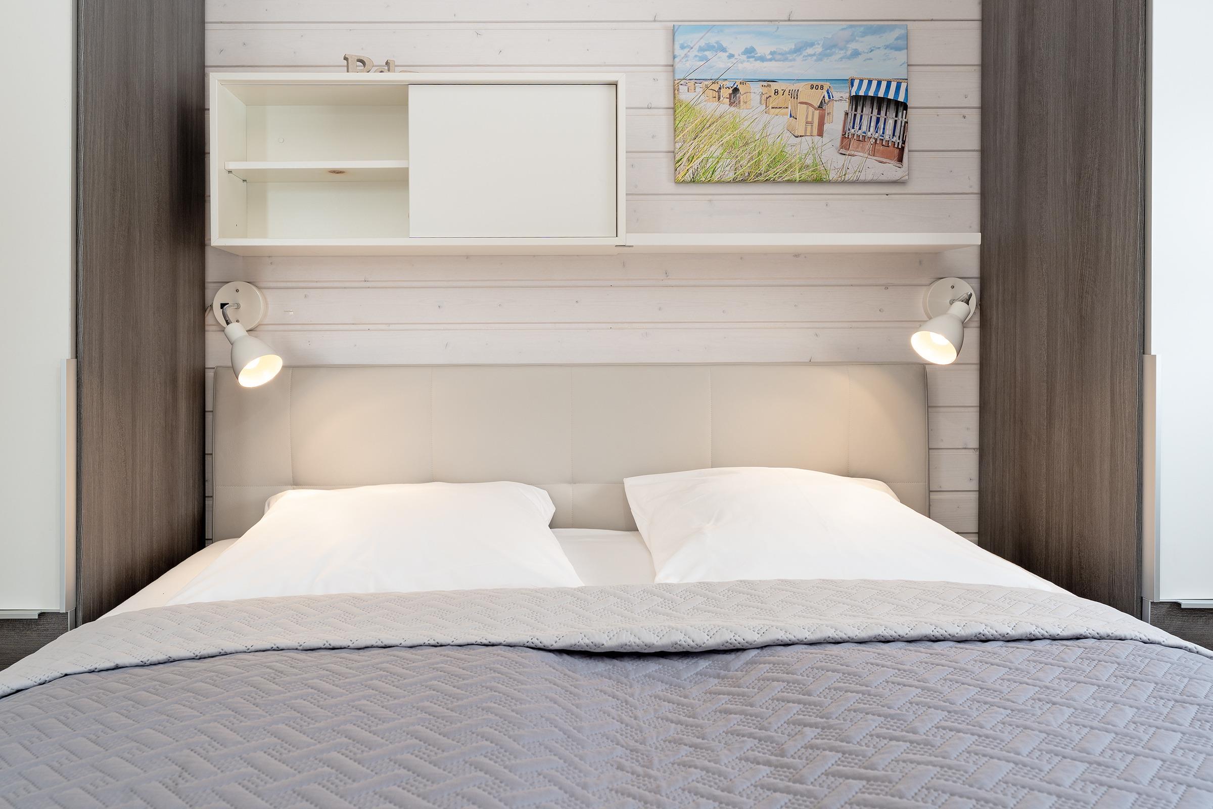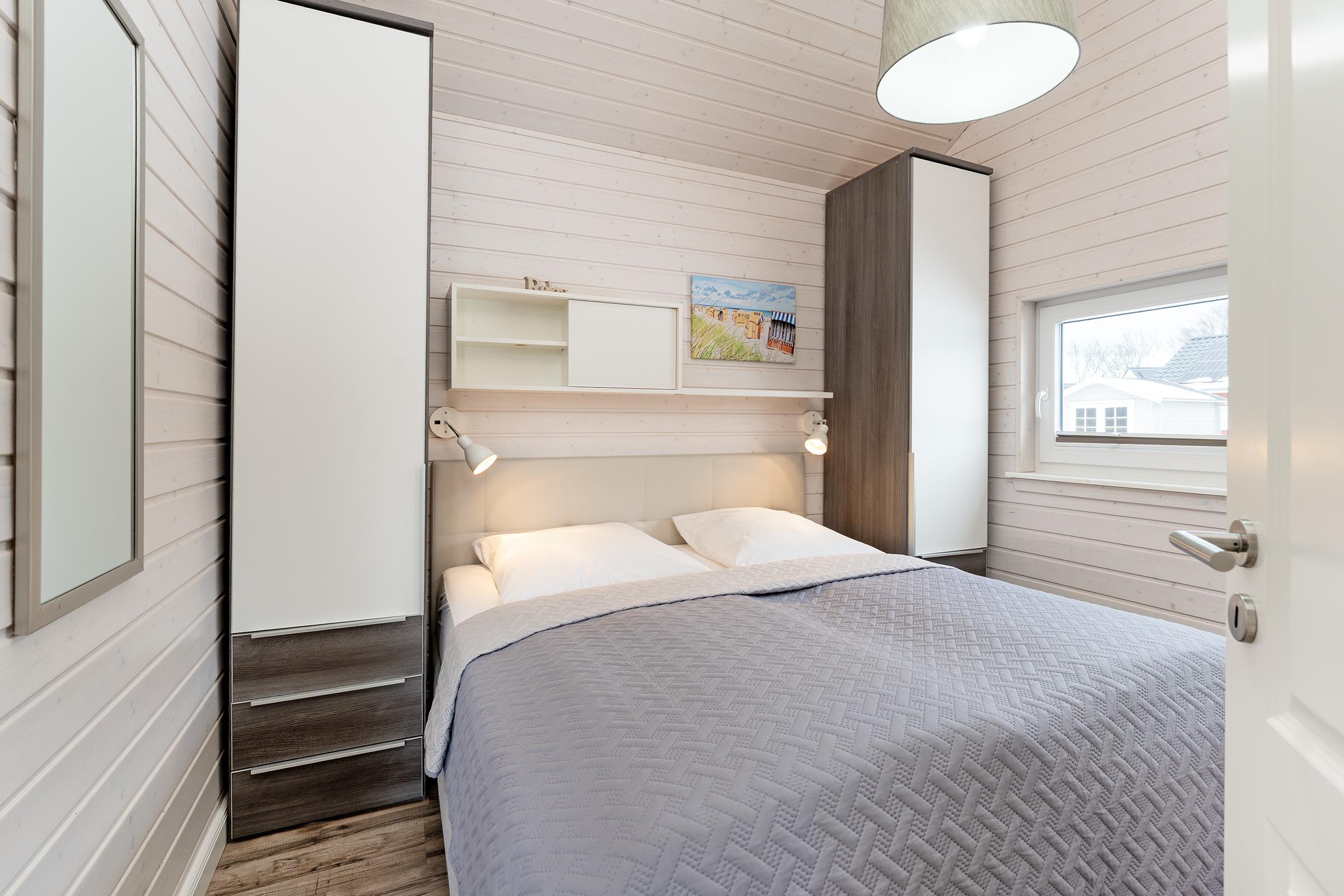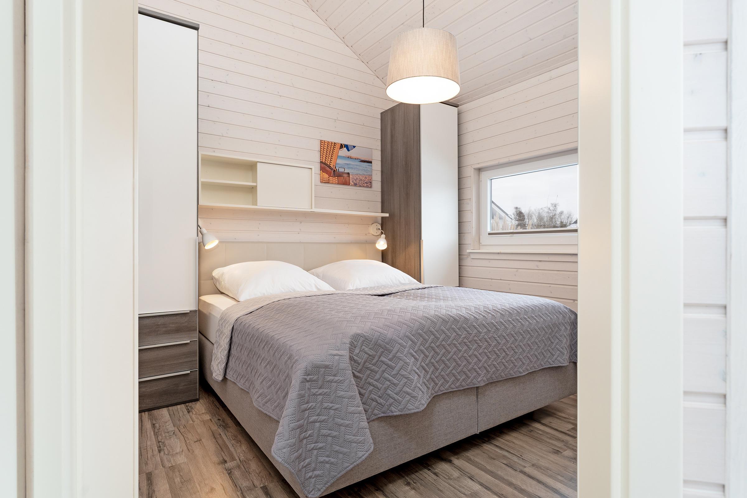 Schlafzimmer 1: 1 Boxspringdoppelbett (180x200 cm), Kleiderschrank, TV, Verdunkelung: Plissee, Platz für ein Babybett vorhanden