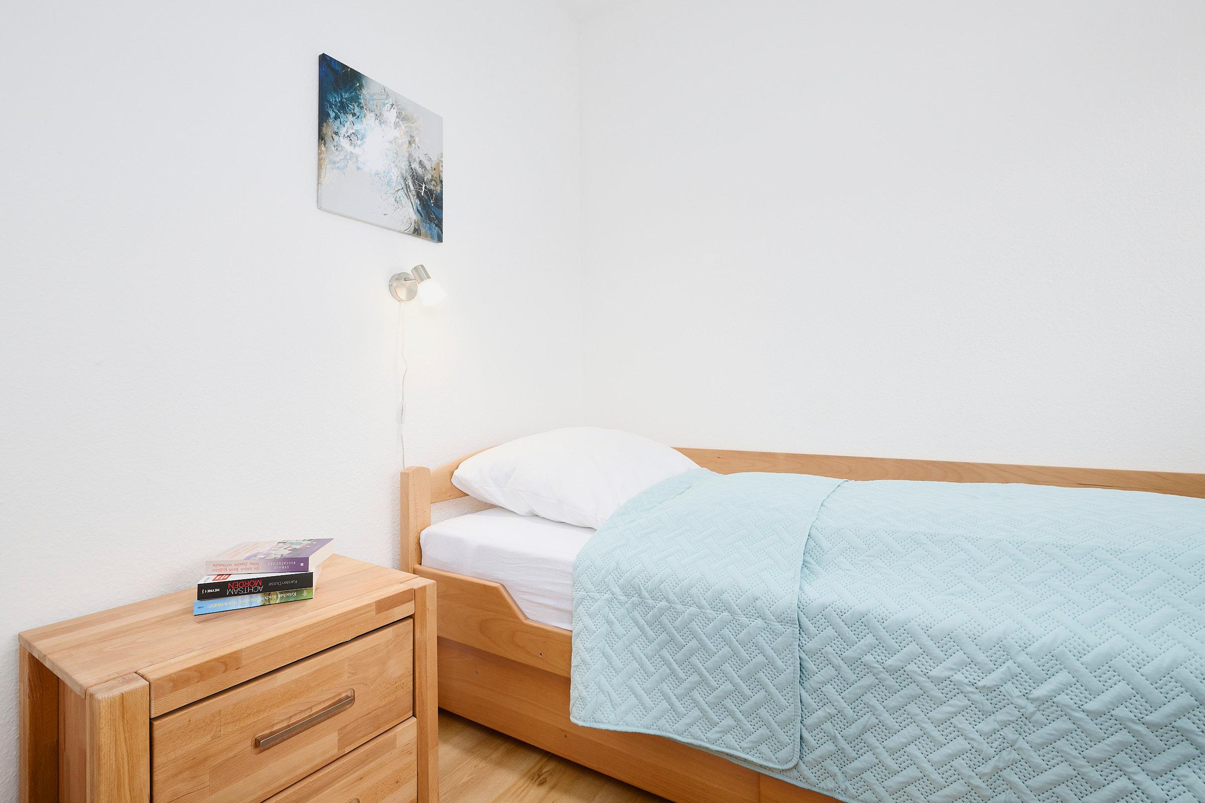 Schlafzimmer 2: 1 Etagenbett (2x 90x200 cm), Kommode, Verdunkelung: elektronische Rollläden