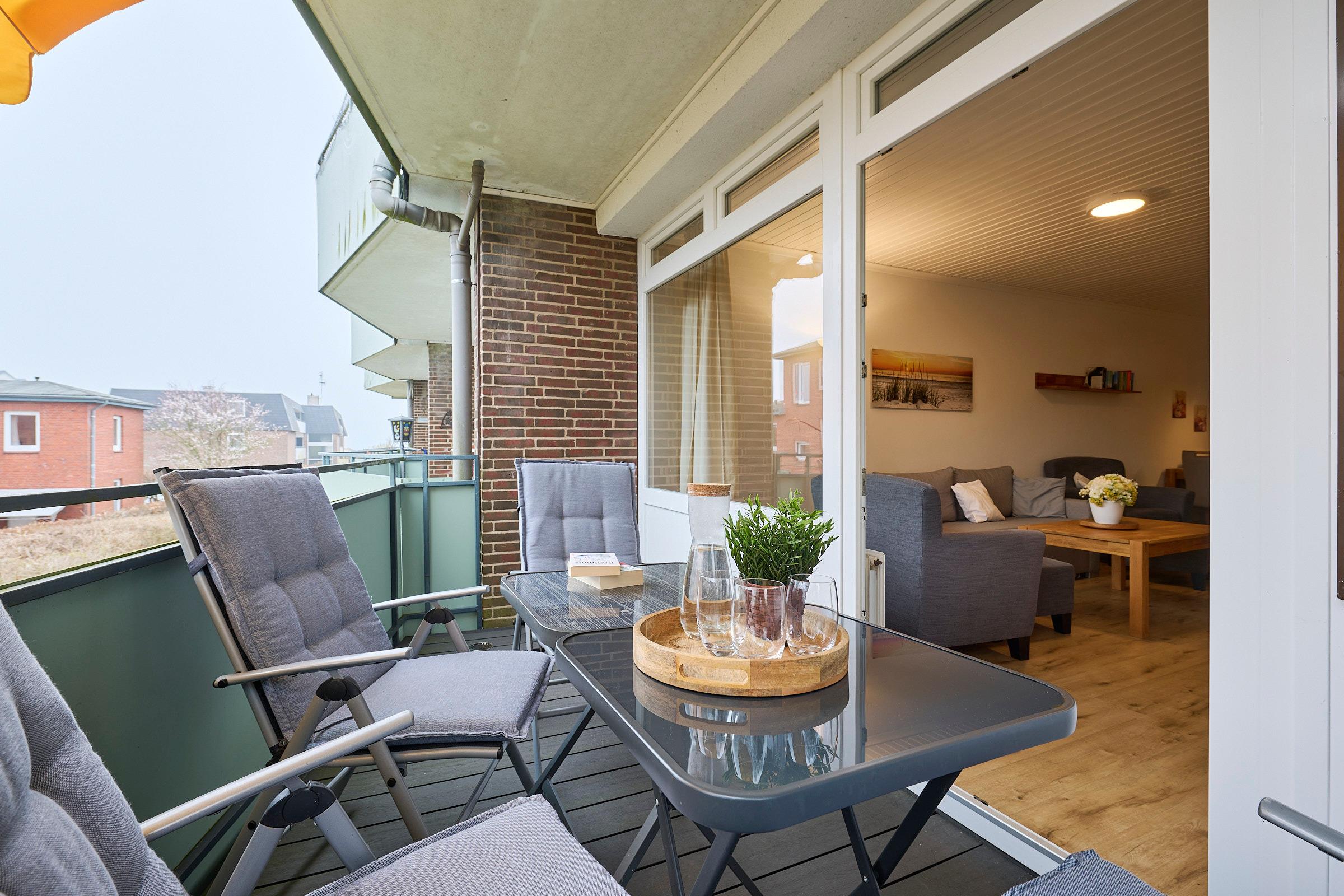 Vom Wohnzimmer können Sie direkt auf den Balkon treten. Machen Sie es sich hier auf den mit bequemen Gartenmöbeln gemütlich. Die Küche ist mit allem Komfort ausgestattet. Im ersten Schlafzimmer befindet sich ein Doppelbett (160x200 cm), ein Kleiderschrank ausgestattet. Das zweite Schlafzimmer ist mit einem Etagenbett (2x 90x200 cm) sowie einer Kommode ausgestattet. Beide Schlafräume können durch elektrischen Rollladen verdunkelt werden.