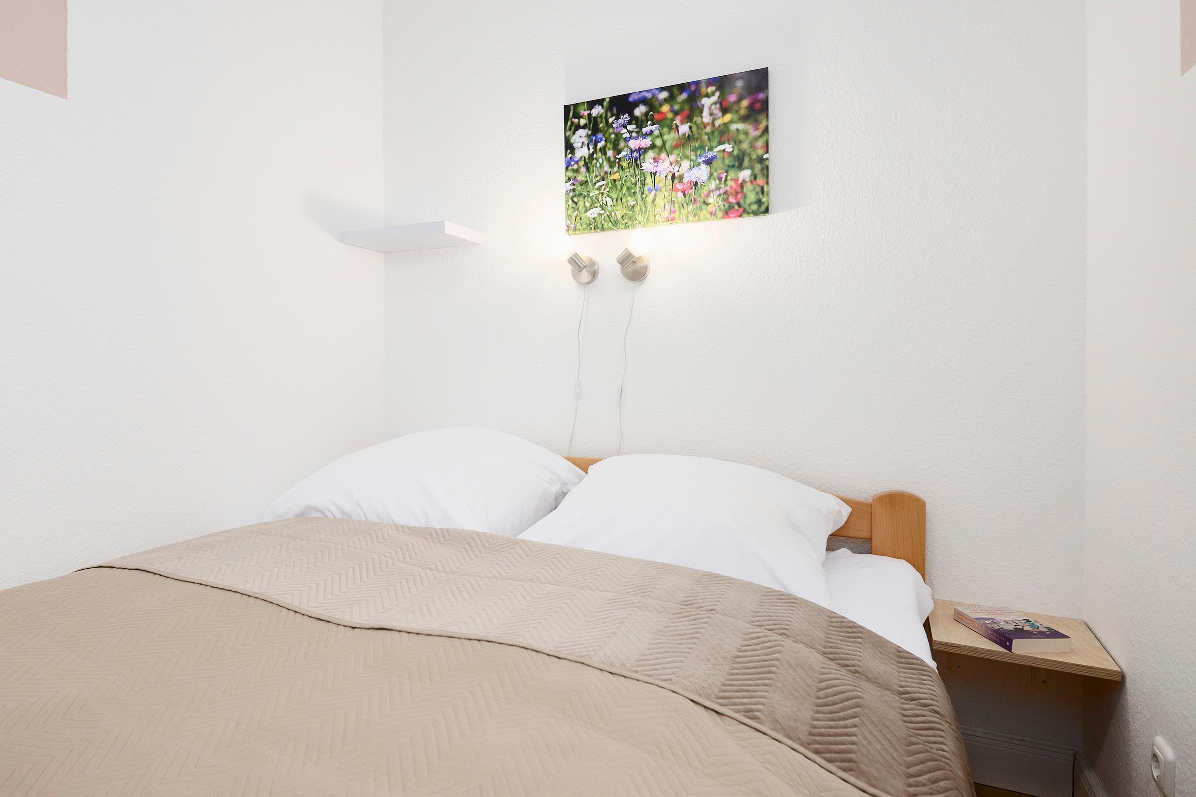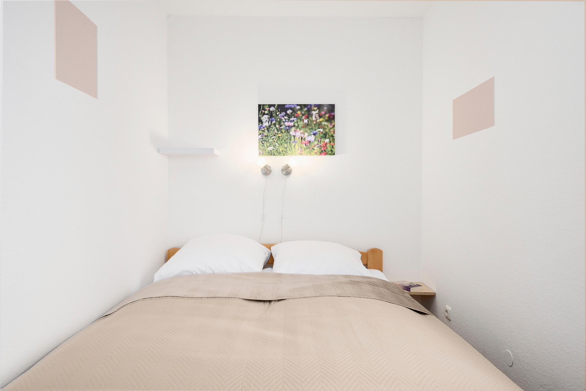 Schlafzimmer 1: 1 Doppelbett (160x200 cm), Kleiderschrank, Verdunkelung: Rollo