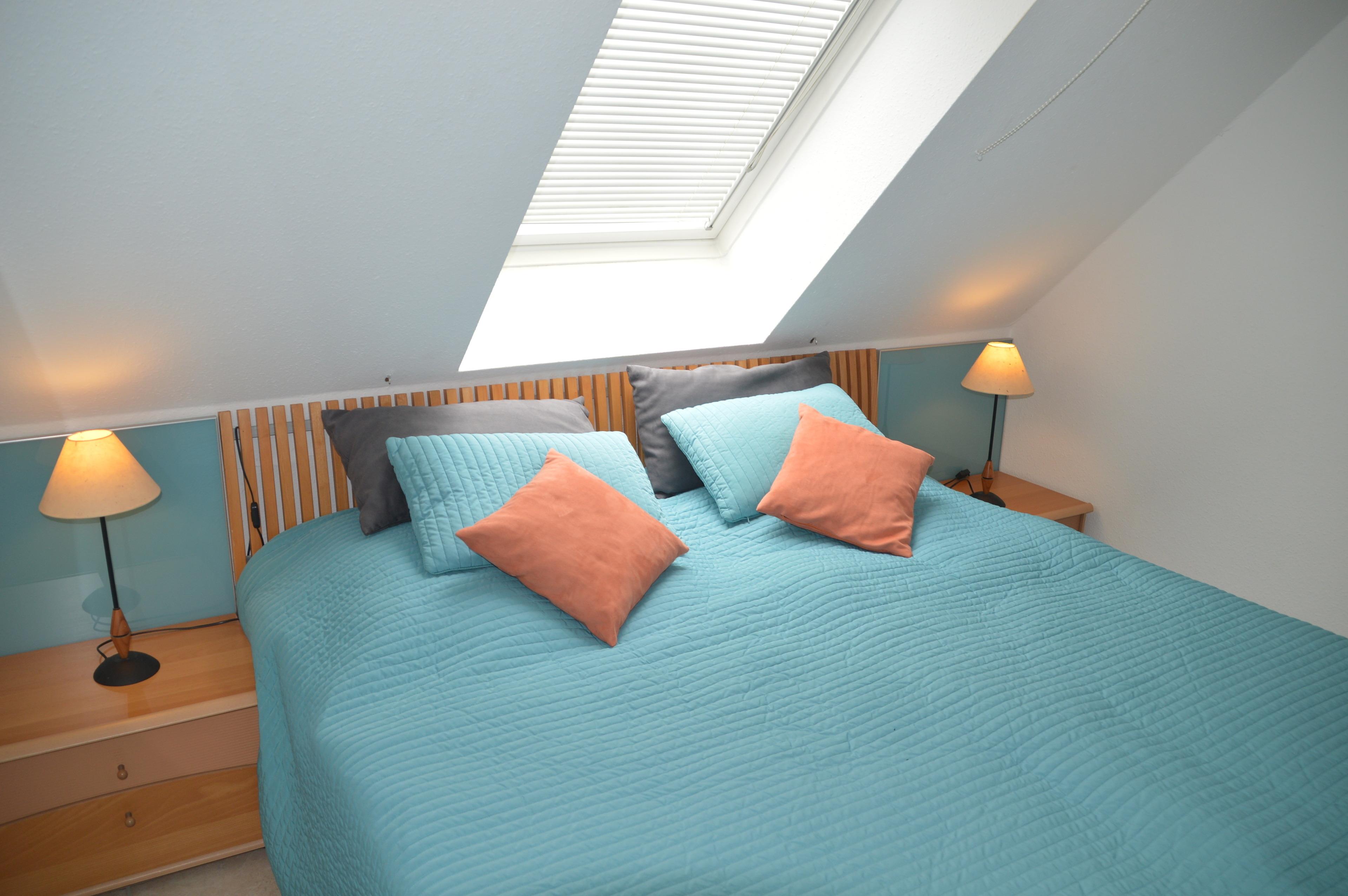 Den Mittelpunkt des Appartements bildet das Wohnzimmer mit Essbereich. Am großen Esstisch lässt es sich wunderbar frühstücken und auf der gemütlichen Couch kann man den Abend vor dem Fernseher ausklingen lassen. Es gibt ein Schlafzimmer mit Doppelbett (1,80 x 2,00 m) sowie ein weiteres Schlafzimmer mit 2 Einzelbetten (0,90 x 2,00 m). Bettwäsche und Handtücher können auf Wunsch dazu gebucht werden. Gerne dürfen Sie auch Ihren Hund mitbringen.