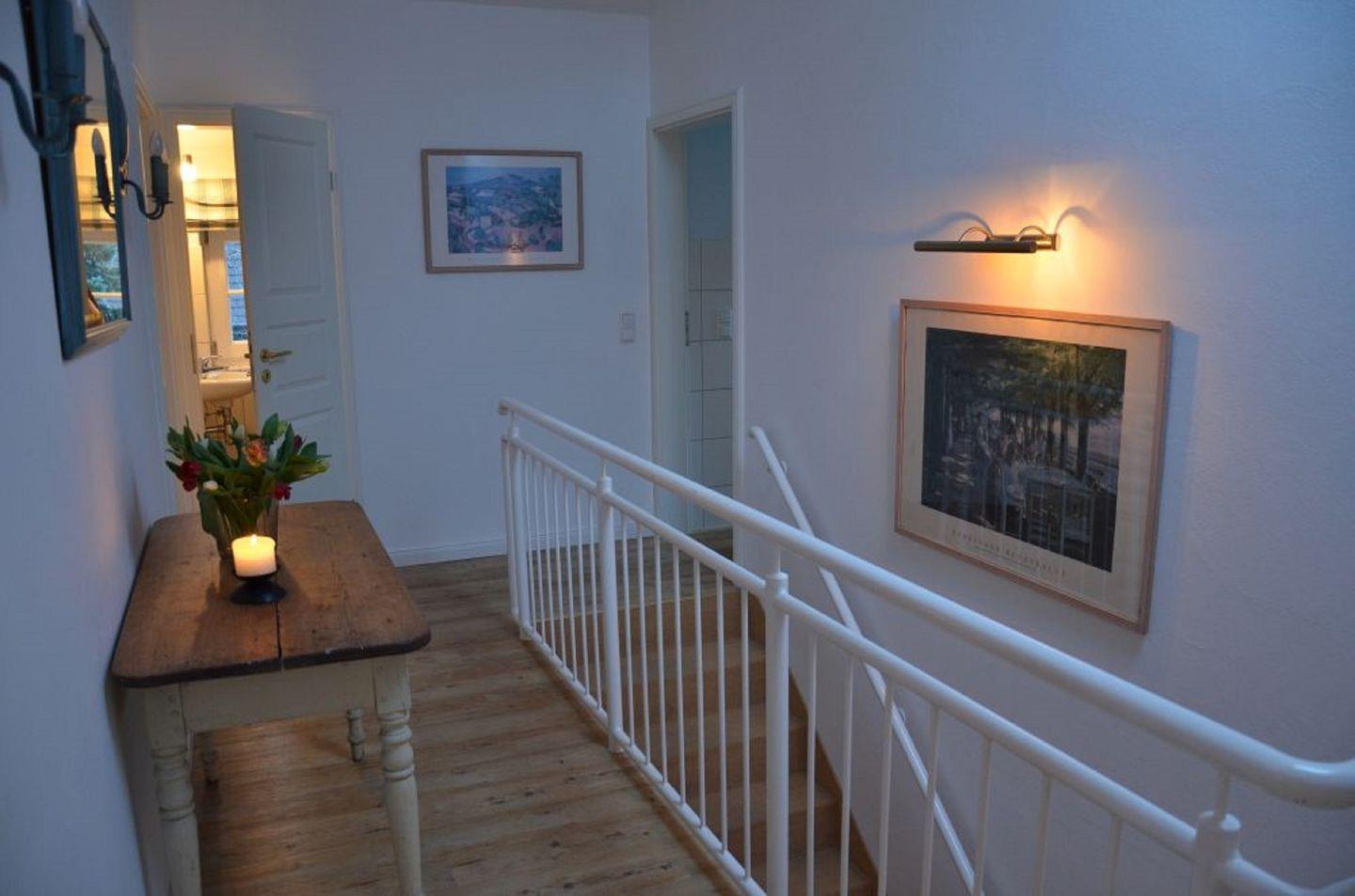 Für Ihren Komfort stehen Ihnen zwei Badezimmer zur Verfügung. Das Badezimmer im Obergeschoss verfügt über eine Badewanne, ein WC, ein Waschbecken, eine Fußbodenheizung, eine Handtuchheizung/-trockner und einen Fön. Im Erdgeschoss befindet sich ein weiteres Badezimmer mit einer Dusche. Zusätzlich gibt es noch ein separates WC mit Waschbecken.