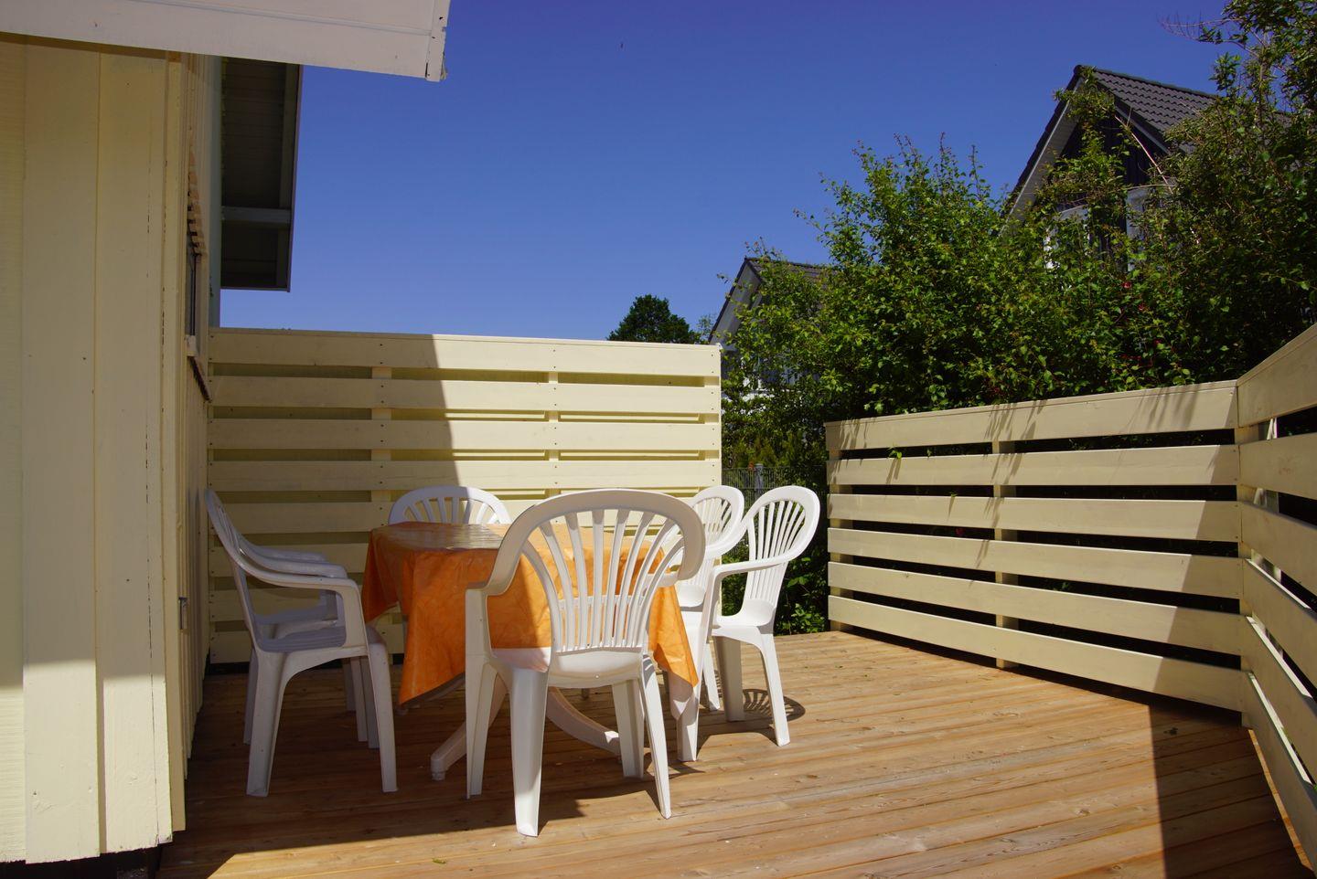 Willkommen in unserem traumhaften Ferienhaus! Lassen Sie sich von der einladenden Außenausstattung begeistern: Genießen Sie die warmen Sonnenstrahlen auf unseren zwei Holzterrassen und entspannen Sie auf den komfortablen Liegen. Die große Rasenfläche lädt zum Toben und Spielen ein, während sich die kleinen Gäste in der Sandkiste vergnügen können. Wir heißen im Jahr 2026 noch bis zu drei Hunde willkommen, sofern sie bei der Buchung angemeldet sind. Ab 2027 wird das Ferienhaus nicht mehr mit Hunden vermietet. Ihr Auto findet einen sicheren Platz auf dem PKW-Stellplatz.