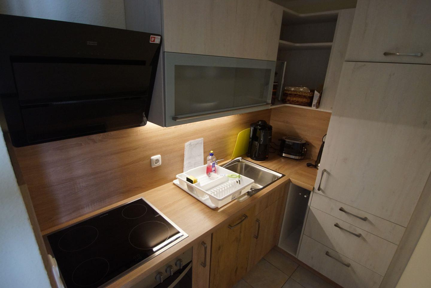 Treten Sie ein und lassen Sie sich vom Inneren des Objekts begeistern. Der großzügige Wohnbereich lädt Sie ein, sich zu entspannen und die Zeit zu genießen. Die komplett eingerichtete Küche lässt keine Wünsche offen und verfügt über ein 4-Platten-Ceranfeld, eine Dunstabzugshaube, eine Kaffeemaschine, einen Kühlschrank mit Gefrierfach, einen Umluftbackofen, einen Wasserkocher, einen Toaster und eine Spülmaschine. Hier können Sie Ihre kulinarischen Fähigkeiten entfalten und leckere Gerichte zubereiten.