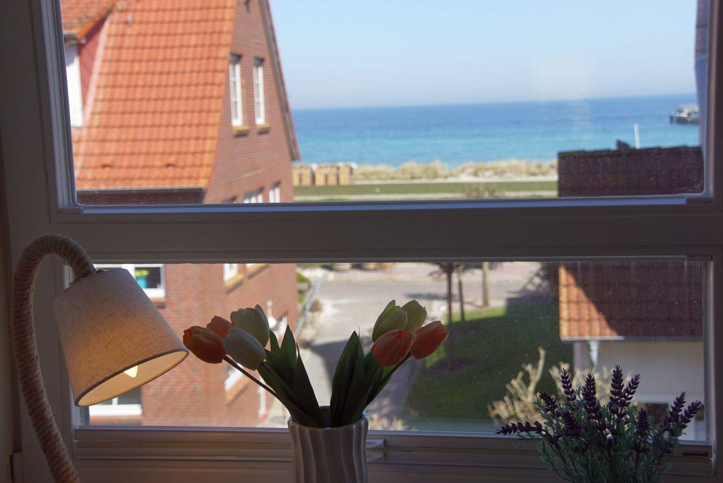 Gemütliche 45 m² große Ferienwohnung im zweiten Stock eines Mehrfamilienhauses. Vom Schlafzimmer und vom Esszimmer aus hat man einen tollen Blick auf die Ostsee. Schöner Wohnbereich mit einem Schlafsofa, Leseecke und einem Flachbildfernseher. Komplett eingerichtete Einbauküche (innenliegend). Bäcker, ein Lebensmittelmarkt, sowie Restaurants und Imbisse befinden sich in unmittelbarer Umgebung. Während der Saison ist ein Strandkorb am Strand inklusive.