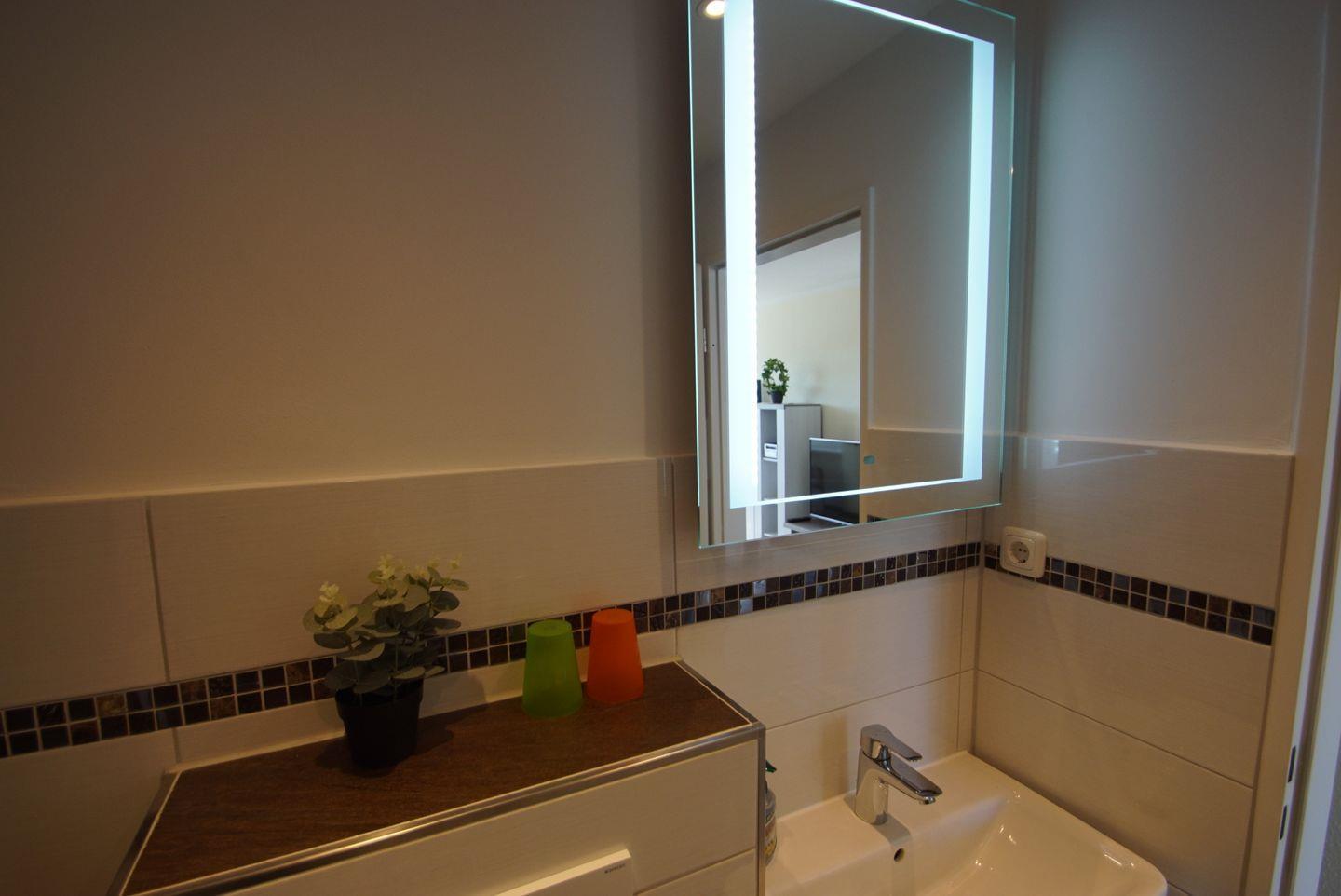 Das moderne Duschbad ist mit einer Dusche, einem Waschbecken, einem WC und einem Fön ausgestattet. Hier können Sie sich erfrischen und entspannen.