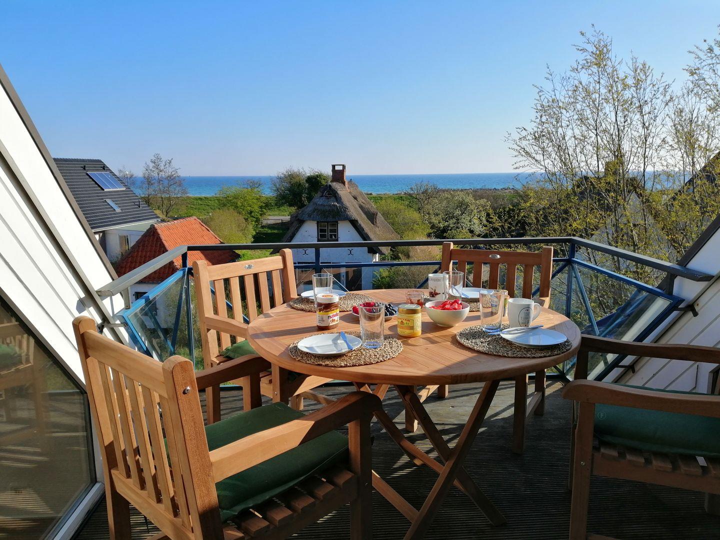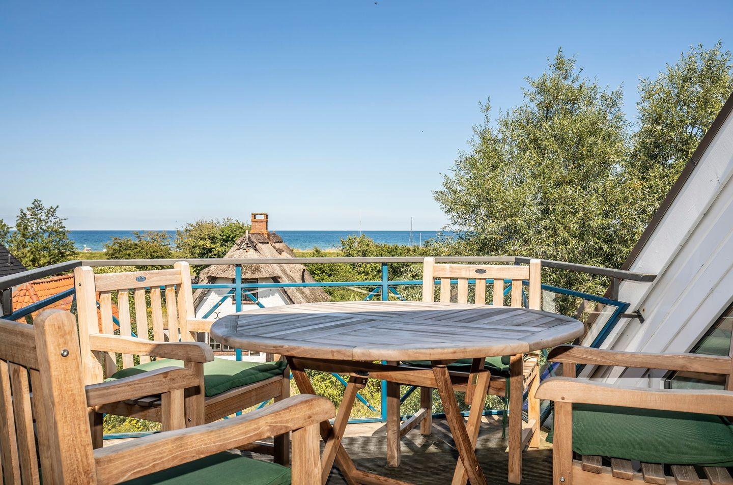 Luxuriöse Maisonette-Ferienwohnung mit Meerblick, Dachterrasse und WLAN, nur 250 m vom Schönberger Strand entfernt.