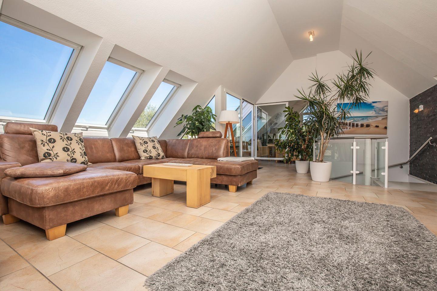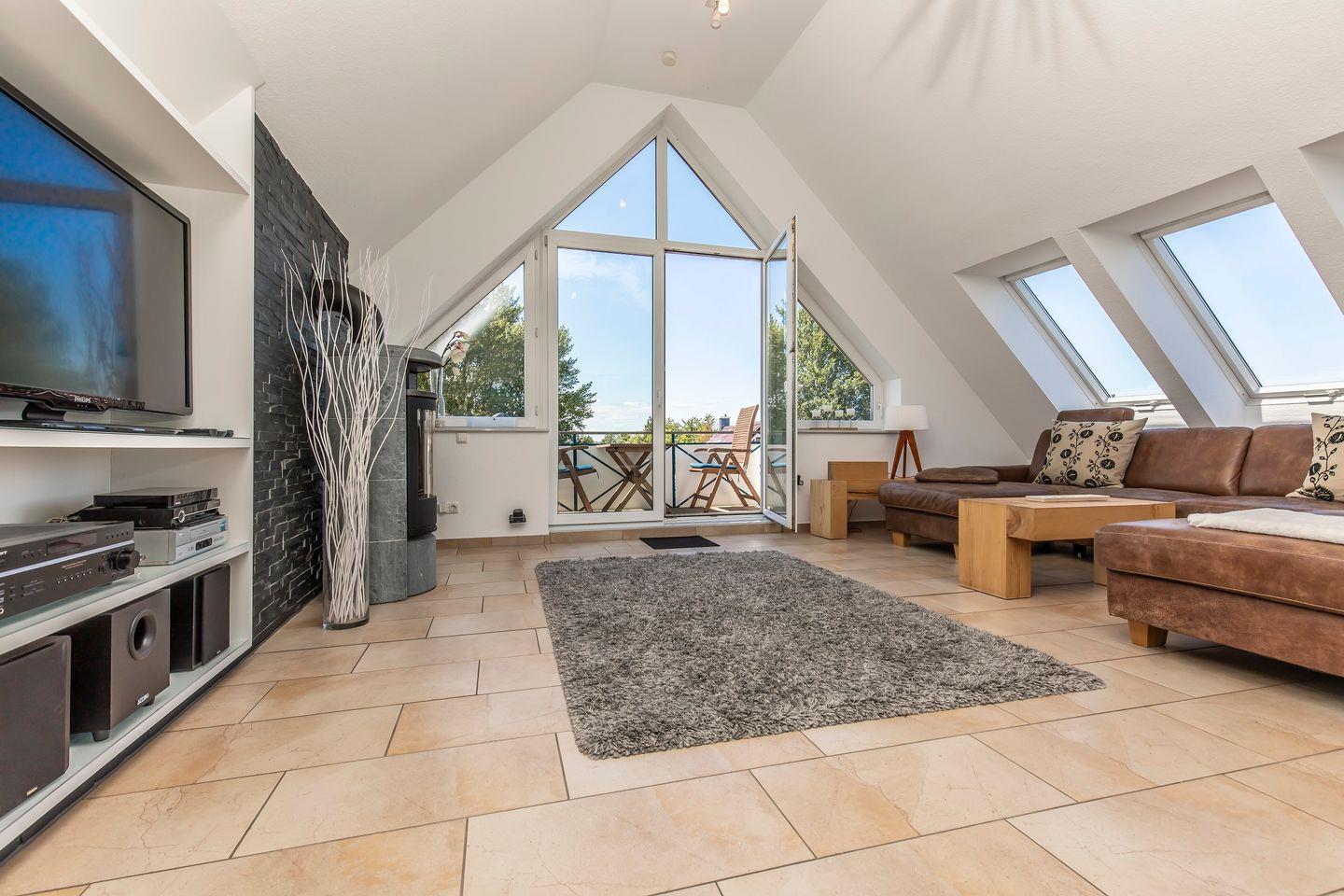 Luxus-Maisonette Ferienwohnung am Schönberger Strand mit Meerblick. Dachterrasse und 2 Balkone, ca. 138 qm Wohnfläche. Mit WLAN, Dolby-Heimkinoanlage und vielen weiteren Extras. Strandentfernung ca. 250 m (100 m Luftlinie). 3 Schlafzimmer, 1 Bad und 1 Gäste WC. Nichtraucherwohnung. Keine Haustiere. Max. 6 Personen.