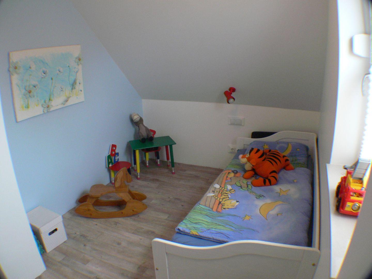 Insgesamt verfügt das Haus über drei gemütliche Schlafzimmer, die Ihnen einen erholsamen Schlaf bieten. Im ersten Schlafzimmer im Obergeschoss erwartet Sie ein komfortables Doppelbett mit einer Größe von 1,80 m. Hier finden Sie auch einen geräumigen Kleiderschrank und eine Außenjalousie, die Ihnen den Raum nach Bedarf abdunkeln lässt. Das zweite Schlafzimmer bietet ebenfalls ein großes Doppelbett und die gleichen Annehmlichkeiten wie das erste. Im dritten Schlafzimmer steht Ihnen ein Einzelbett zur Verfügung, das bei Bedarf zu einem Doppelbett erweitert werden kann. Eine Kommode und eine Außenjalousie runden die Ausstattung ab.