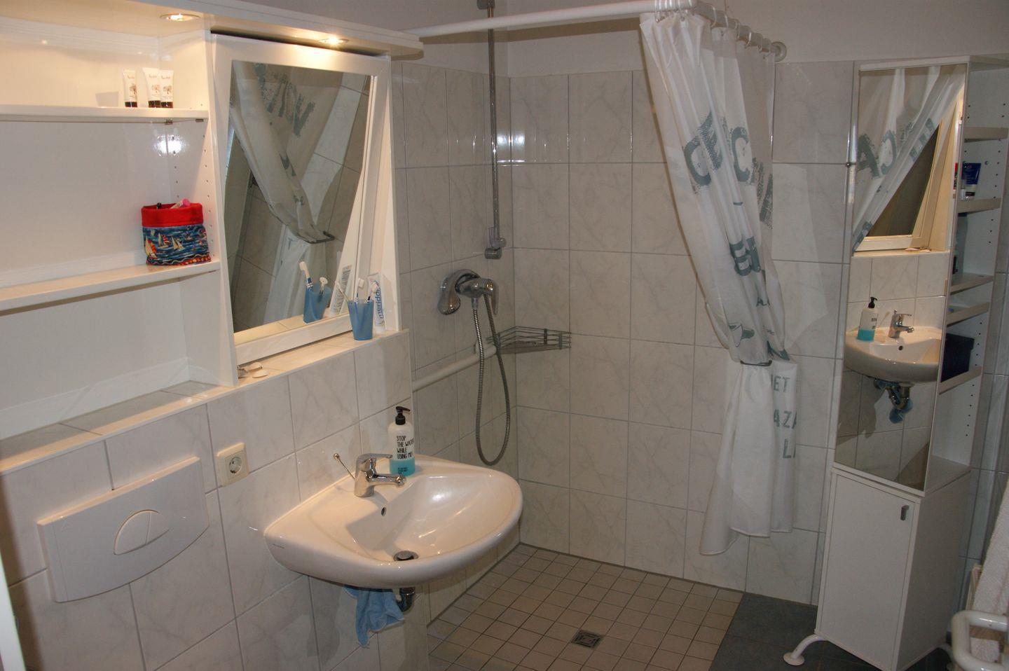 Das Badezimmer verfügt über eine Dusche, ein WC, ein Waschbecken und einen praktischen Fön, der Ihnen das Packen von zusätzlichem Gepäck erspart.