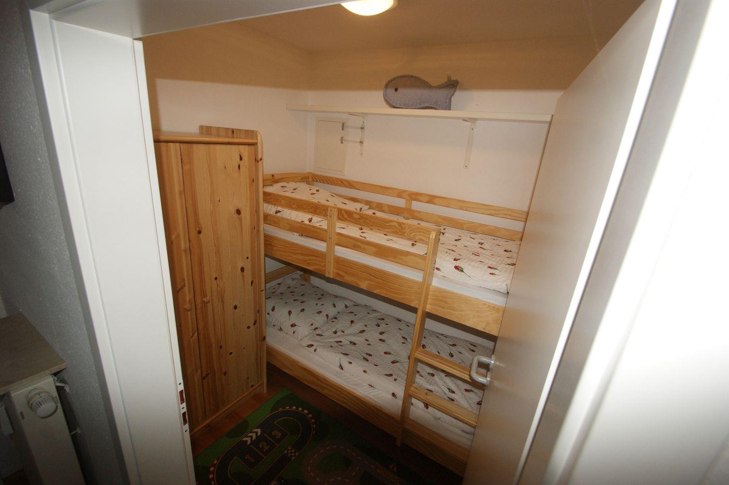 Das Schlafzimmer bietet Ihnen einen erholsamen Rückzugsort mit einem gemütlichen Doppelbett, das mit zwei komfortablen Matratzen ausgestattet ist. Ein geräumiger Kleiderschrank steht Ihnen zur Verfügung, um Ihre Kleidung ordentlich zu verstauen. Für unsere kleinen Gäste haben wir ein entzückendes Kinderzimmer eingerichtet, das mit einem Etagenbett mit zwei Etagen ausgestattet ist. Hier können sich Ihre Kinder nach einem aufregenden Tag voller Spaß und Abenteuer zur Ruhe legen. Auch hier finden Sie einen geräumigen Kleiderschrank, um alle wichtigen Dinge Ihrer kleinen Lieblinge unterzubringen.