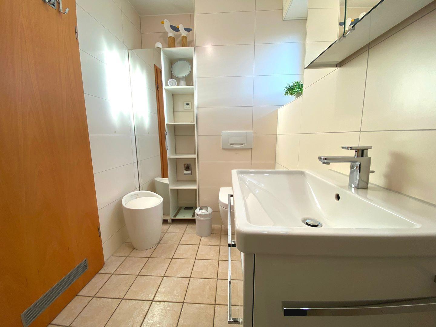 Das moderne Badezimmer verfügt über eine Dusche, Haartrockner und einen Kosmetikspiegel, um Ihren Aufenthalt so angenehm wie möglich zu gestalten. Ein absolutes Highlight dieser Ferienwohnung ist der überdachte Balkon, von dem Sie den atemberaubenden Blick auf die Ostsee genießen können. Hier können Sie nach einem langen Strandtag bei einem Glas Wein den Sonnenuntergang beobachten oder in der frischen Meeresbrise entspannen.