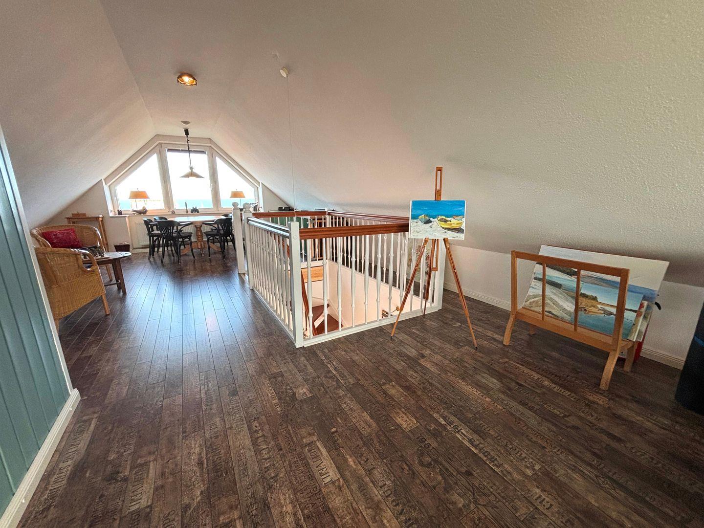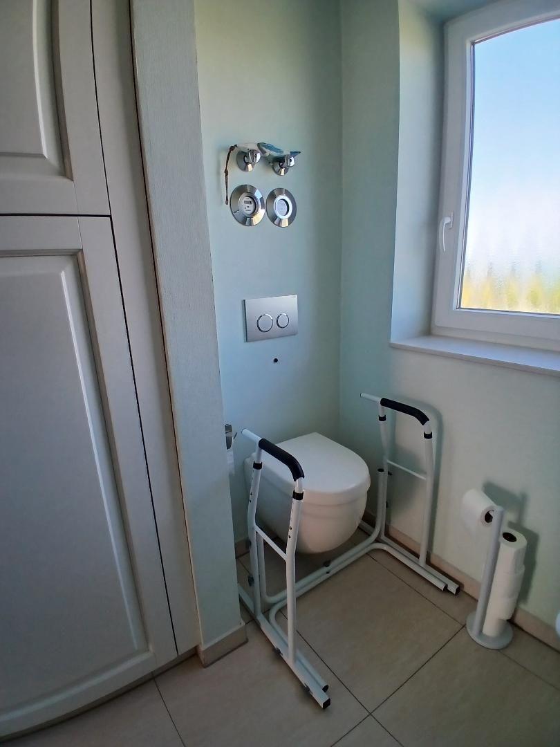 Der barrierearme Zugang, dank Rampe vor dem Haus und Fahrstuhl bis vor die Wohnungstür, erleichtert den Zugang zum Hauptteil der Wohnung z.B. mit Kinderwagen sowie für Person mit eingeschränkter Mobilität. Beide Duschen sind ebenerdig. Lediglich zum oberen Schlafzimmer muss eine Treppe, und um auf den Balkon zu gelangen eine kleine Stufe überwunden werden.