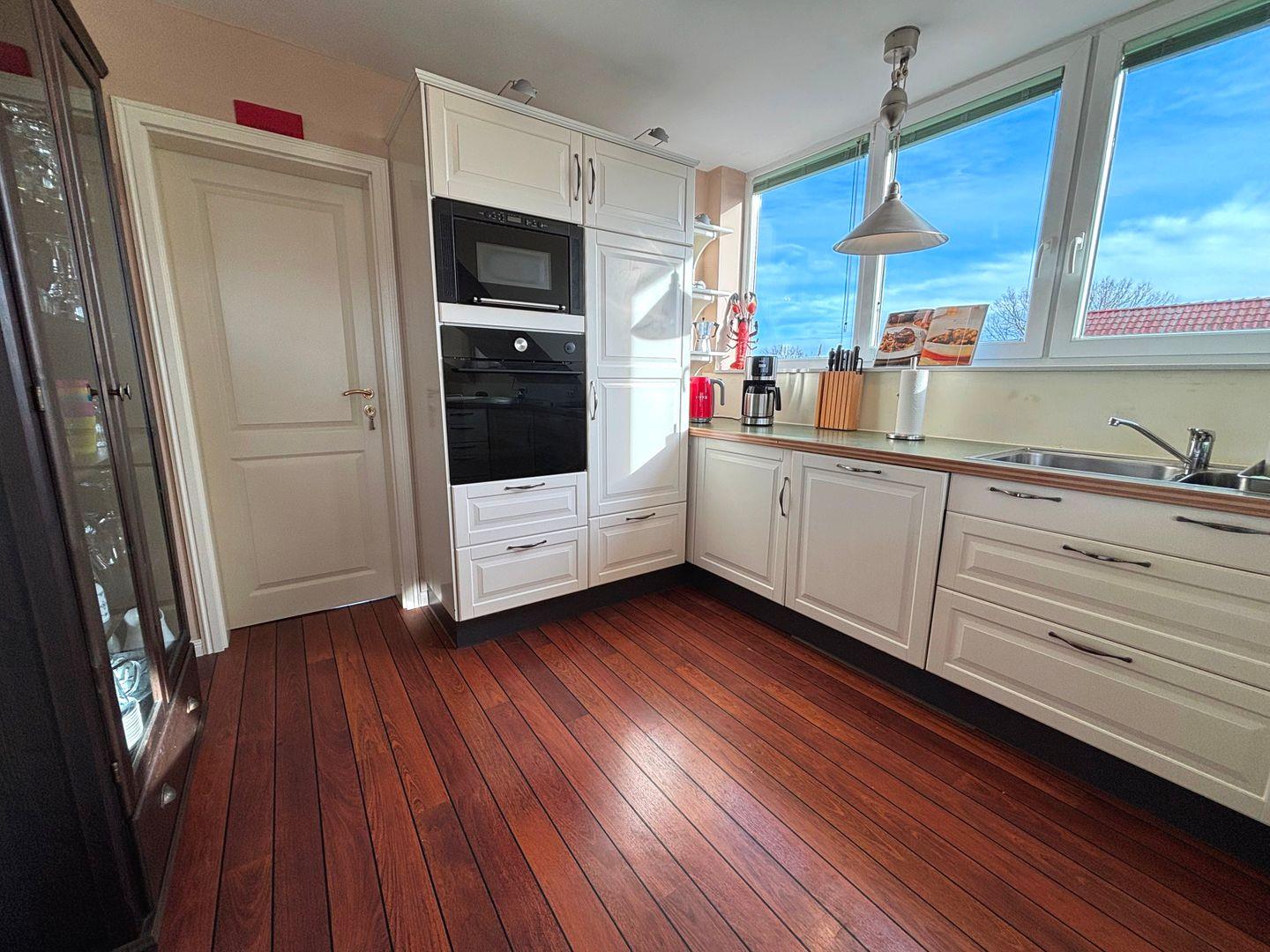 Die offene Küche ist mit modernen Geräten wie Cerankochfeld, Backofen und Spülmaschine ausgestattet und lässt keine Wünsche offen. Ein Wasserkocher, eine Kaffeemaschine und ein Mixer ermöglichen es Ihnen, auch während Ihres Urlaubs schnell und einfach Ihre Lieblingsgerichte zu zaubern. Genießen Sie schöne Stunden auf dem überdachten Balkon, der einen herrlichen Blick auf die Umgebung bietet.