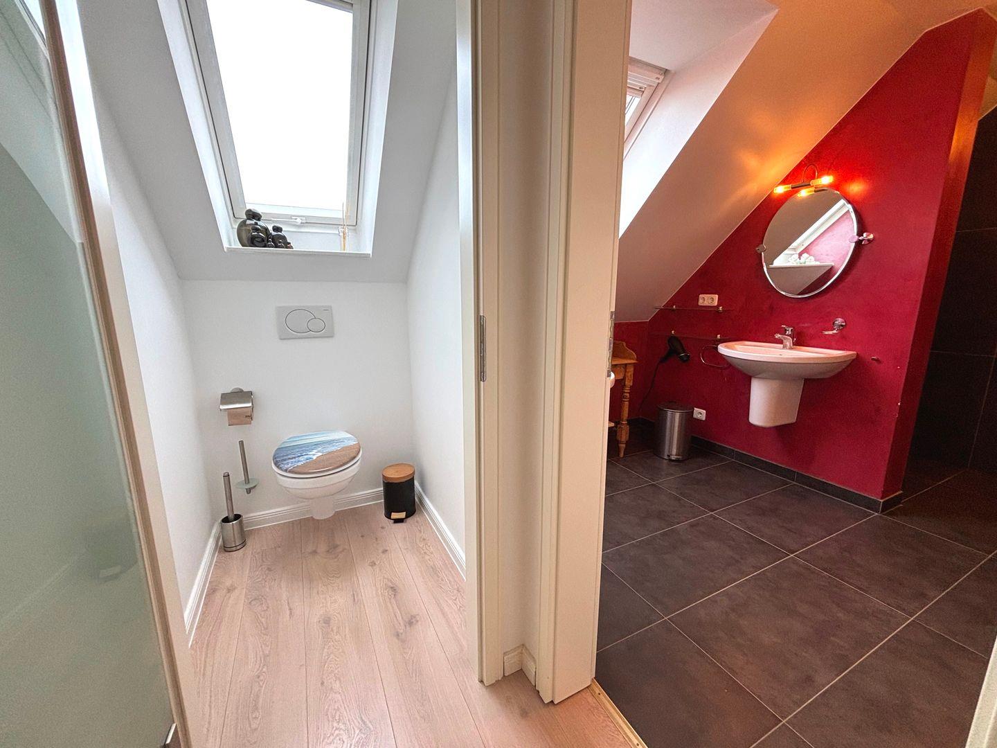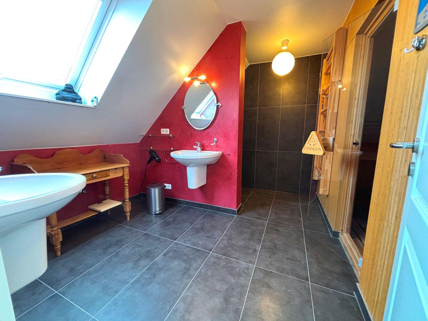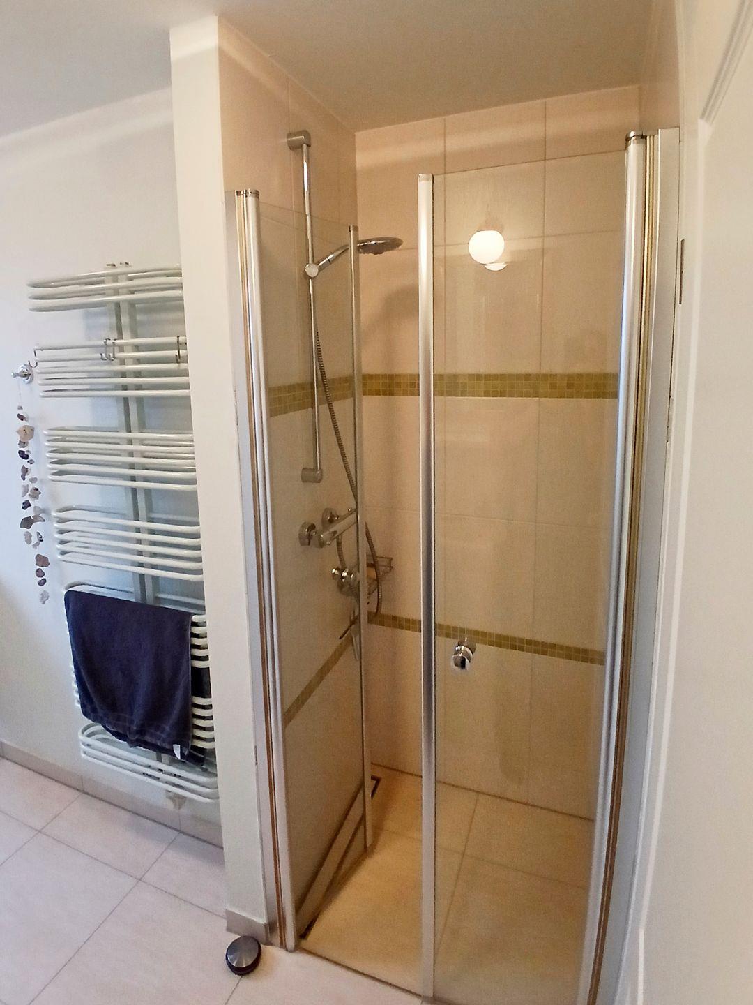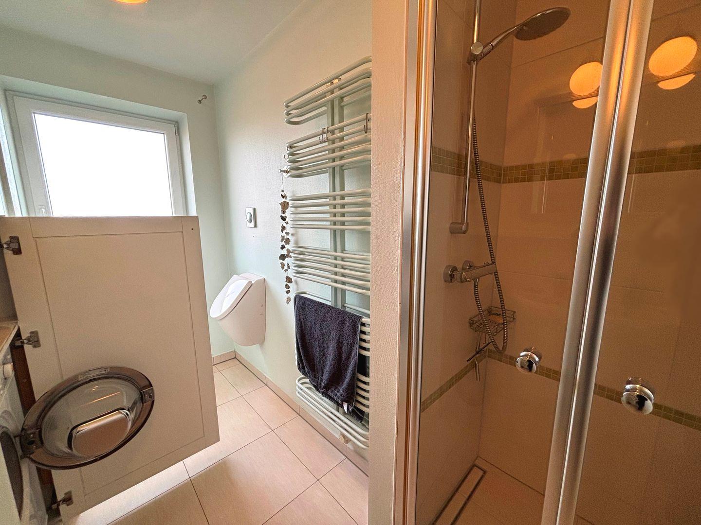 Die beiden Badezimmer sind modern und komfortabel ausgestattet. Das erste Badezimmer verfügt über eine Dusche, eine Waschmaschine, einen Handtuchheizkörper, ein WC und ein Pissoir. Im zweiten Badezimmer finden Sie eine Dusche, ein WC (räumlich abgetrennt) und eine Sauna – ideal für entspannte Wellness-Momente nach einem langen Tag am Strand, der nur ca. 300 Meter entfernt liegt.
