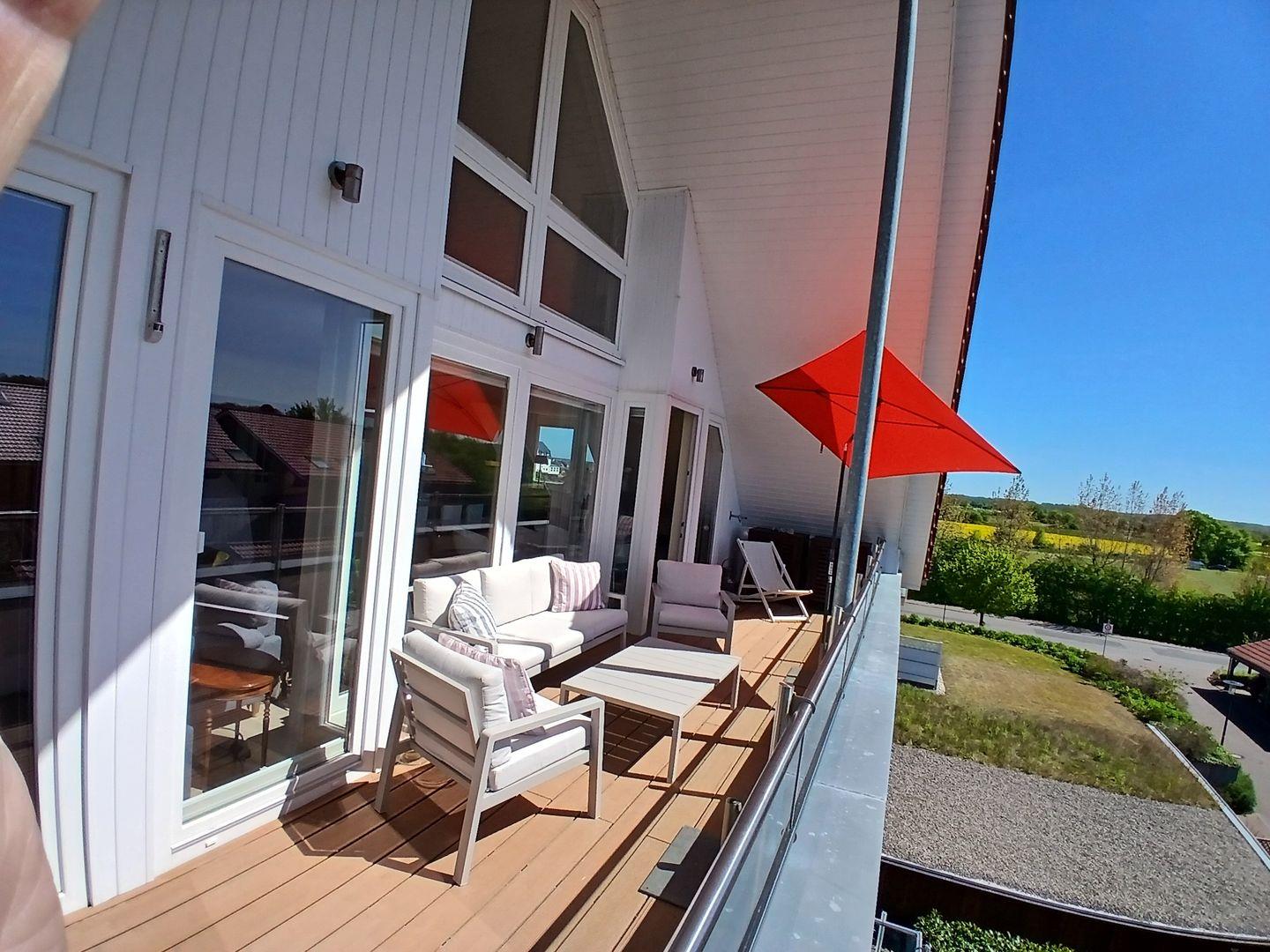 Exklusive Ferienwohnung Sonnendeck am Schönberger Strand mit Sauna, Balkon und Meerblick, nur 300 Meter vom Sandstrand entfernt.