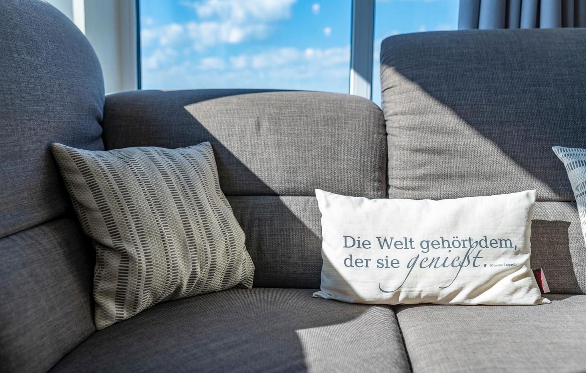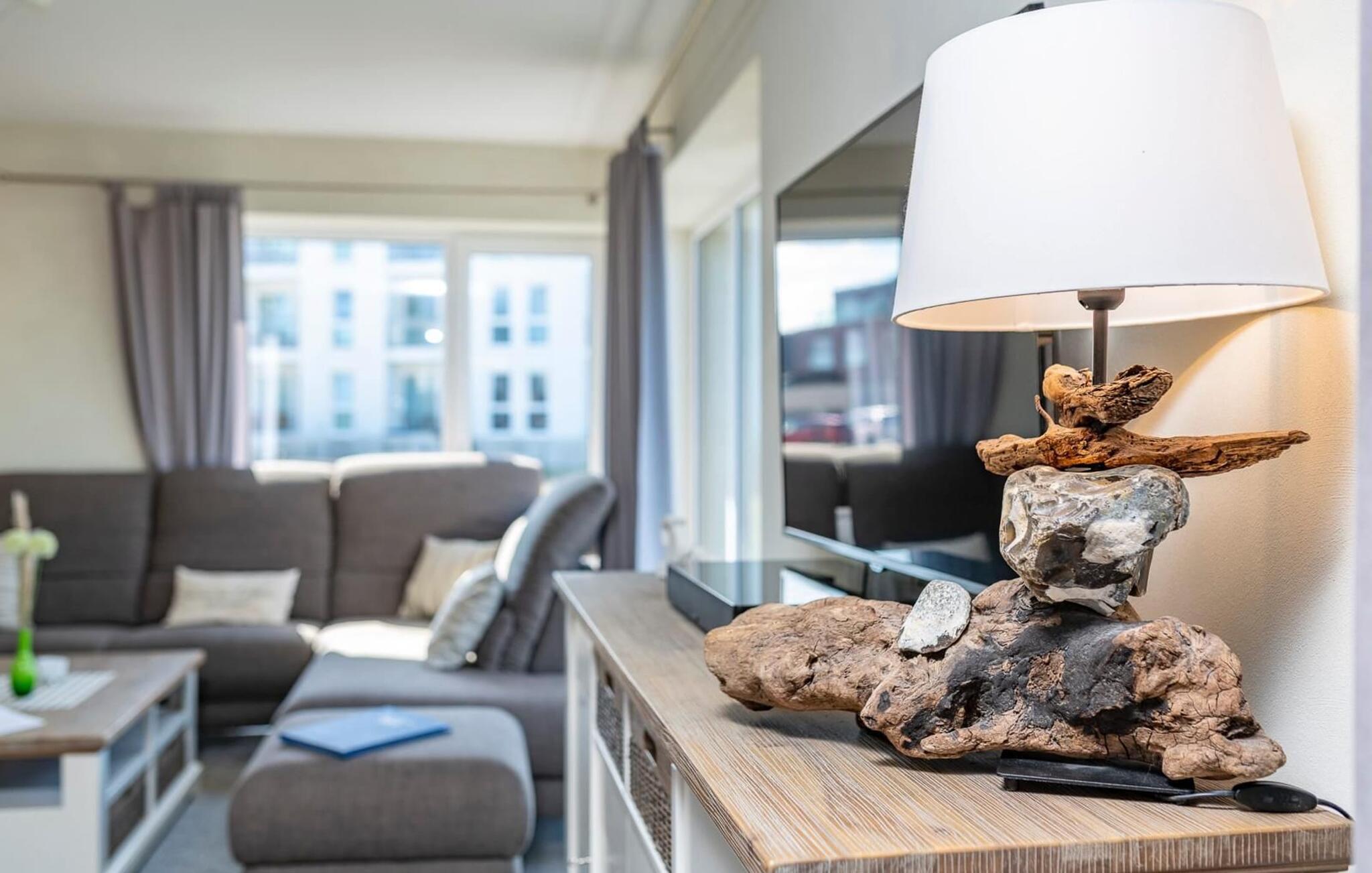 Die ebenerdige Ferienwohnung ist sehr hochwertig und stilvoll in Naturtönen und bewusst klaren und schlichten Formen gehalten. Sie bietet an anspruchsvoller Ausstattung alles für einen rundum gelungenen Urlaub am Meer.