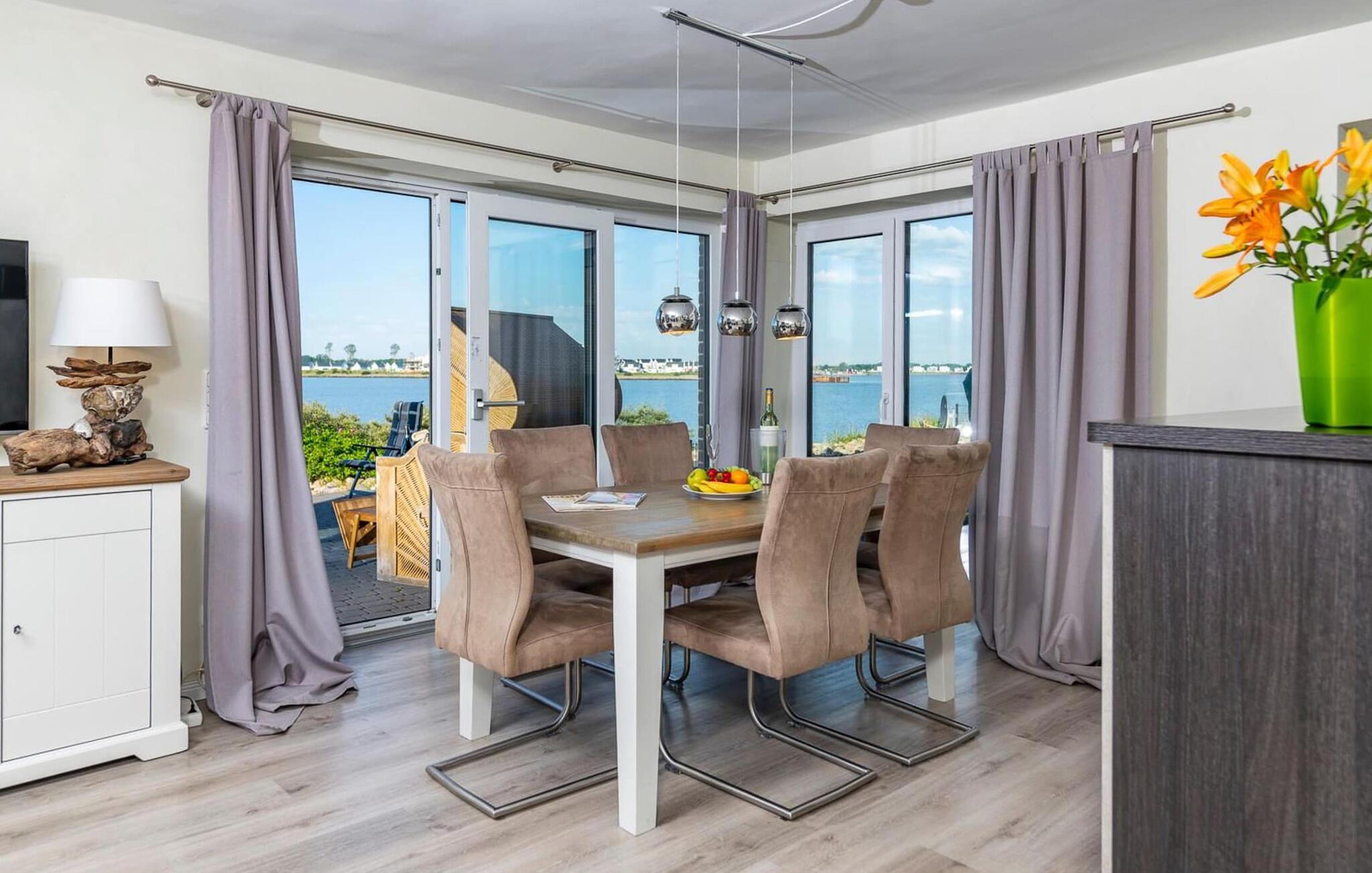 Stilvolle Ferienwohnung in Olpenitz mit Meerblick, großer Terrasse und Sauna für einen entspannten Urlaub am Ostseeresort.