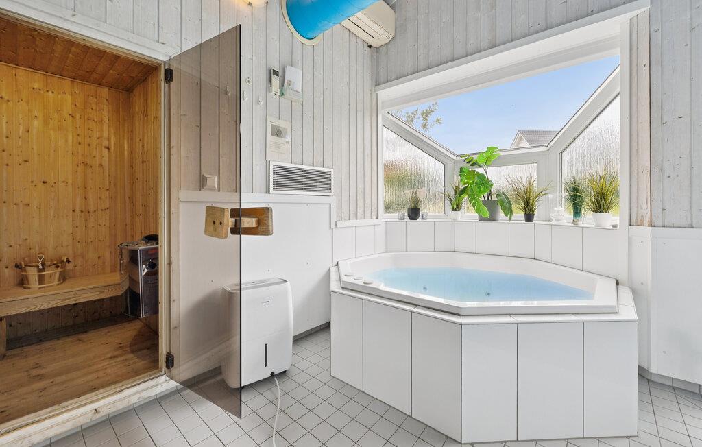 Wenn Sie das Besondere mögen, werden Sie dieses Haus lieben. Auf luxuriösen 174 m2 warten zahlreiche Extras auf Sie. Schwimmen Sie wie im Meer, ohne das Haus zu verlassen – eine Gegenstromanlage im Pool macht’s möglich. Die Sauna sowie ein Whirlpool für fünf Personen laden zum Relaxen ein.