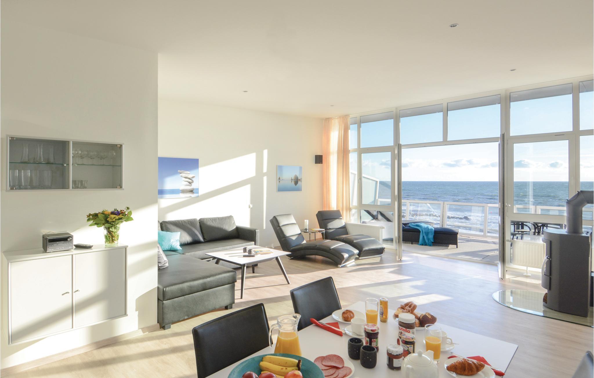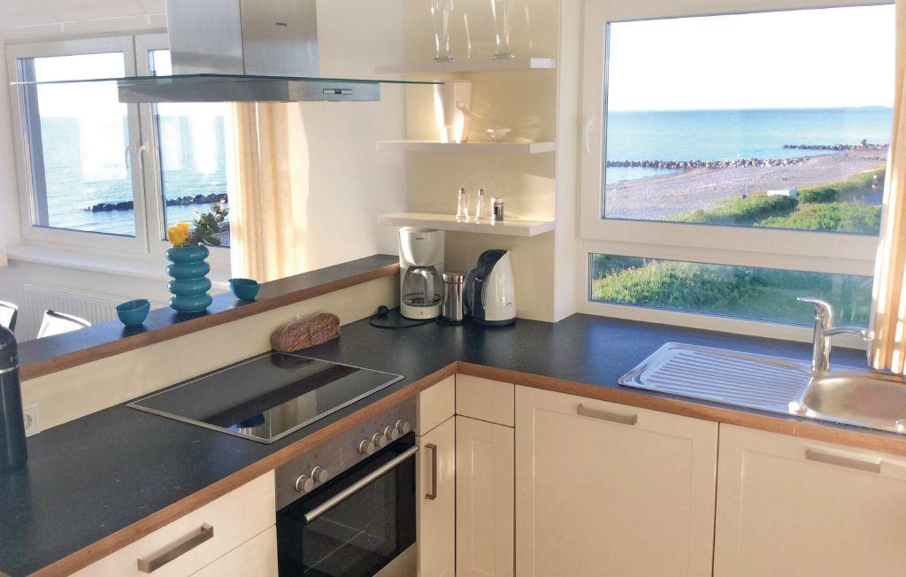 Die Ferienwohnung bietet mit 110 m² viel Platz für bis zu sechs Personen (zwei Schlafplätze auf dem ausziehbaren Sofa im Wohnbereich) und verfügt über eine eigene, kleine Wellnessoase mit 2-Personen-Whirlpool und Sauna. Sollte das Wetter einmal nicht mitspielen, kann man hier herrlich entspannten. Auch die zwei HD-Fernseher sowie die Spielekonsole (XBOX kinect) lassen keine Langeweile aufkommen. Das Ferienhaus verfügt über WLAN mit Glasfaser. Im Winter sorgt der skandinavische Kaminofen für eine besonders gemütliche Atmosphäre - hier kann man neben dem knisternden Kaminfeuer die Panoramaaussicht auf die stürmische Ostsee genießen.
