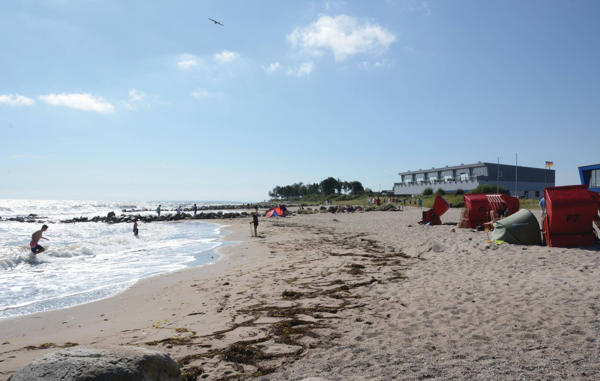 Der Sandstrand von Schönhagen beginnt unmittelbar vor der Haustür, nur getrennt durch die schöne Promenade. Im Erdgeschoss befindet sich das Servicebüro sowie ein Café, hier sind Sie also mitten im Geschehen.