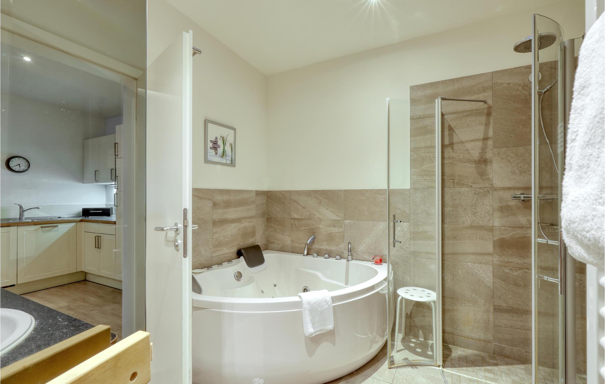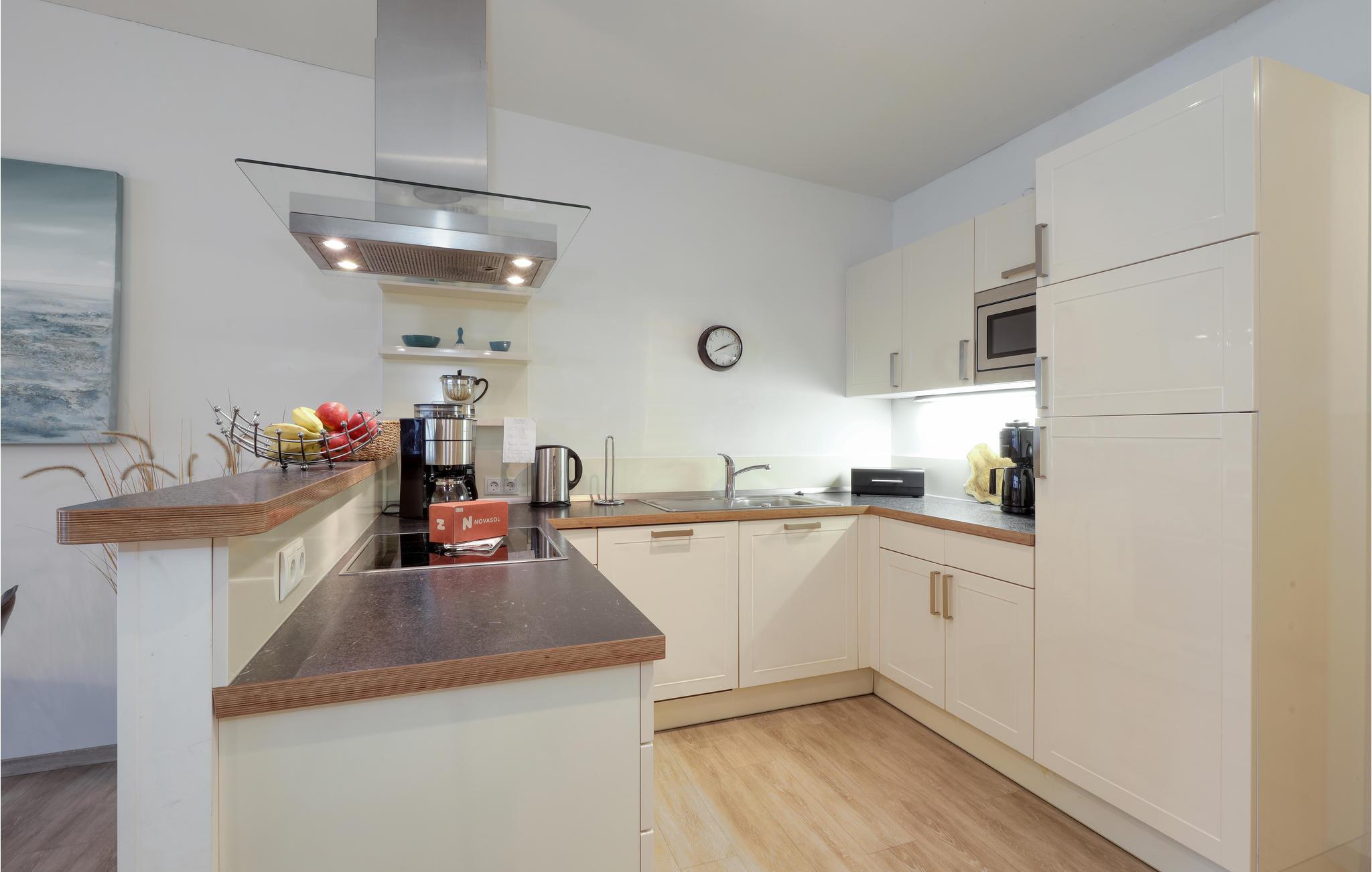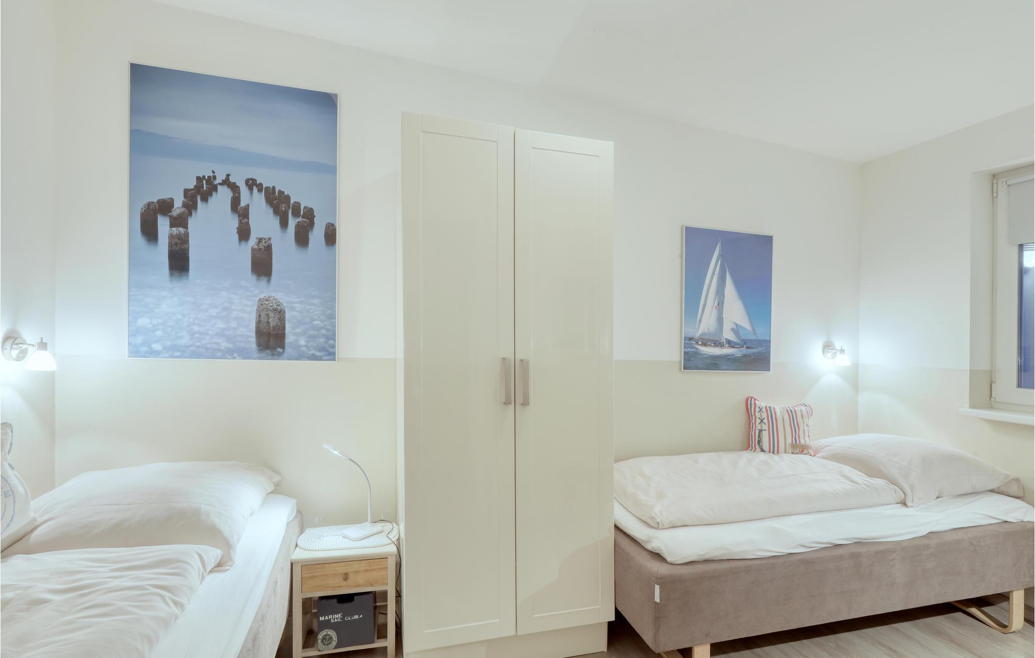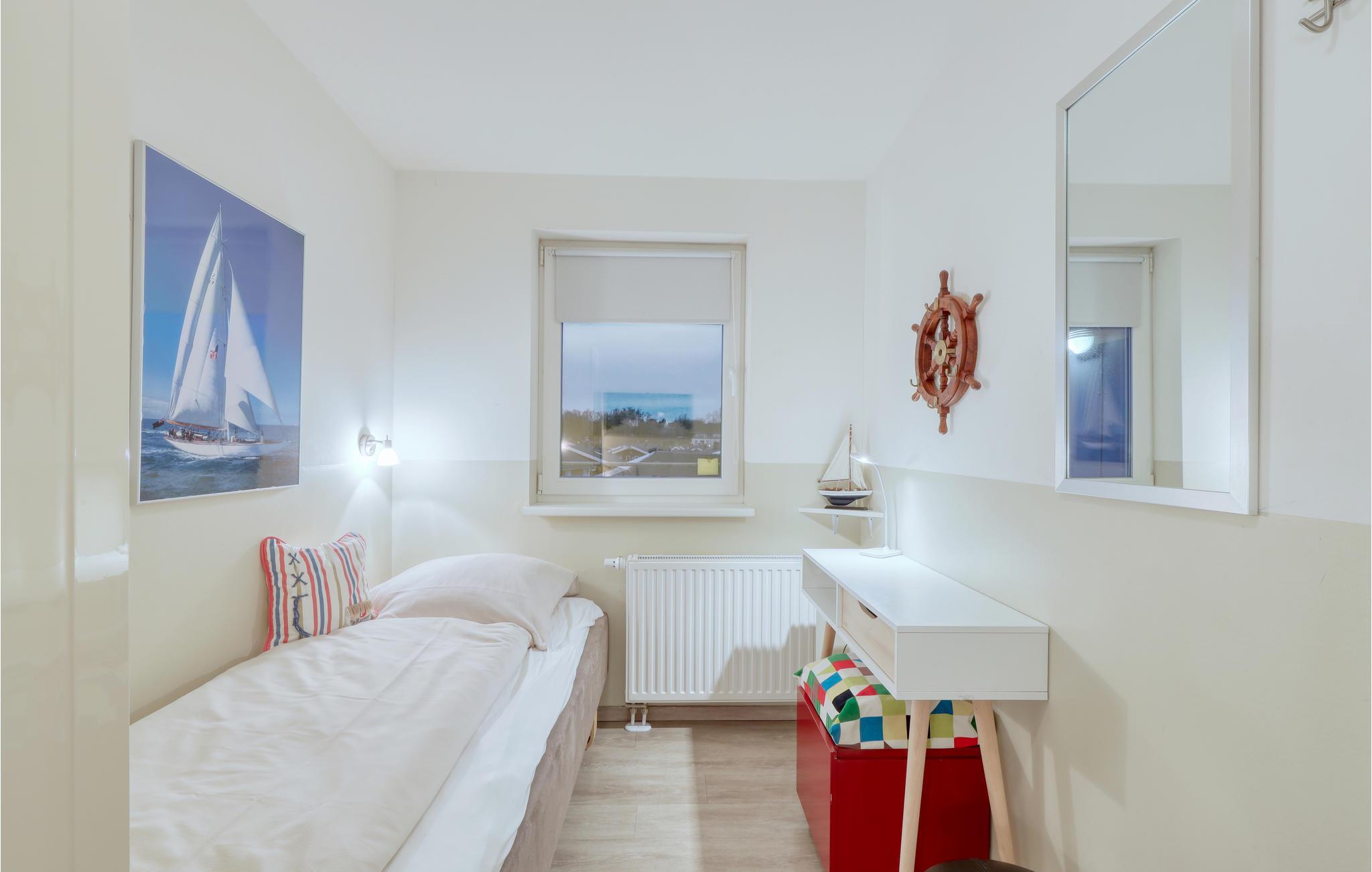 Die Ferienwohnung bietet mit 110 m2 viel Platz für bis zu sechs Personen (zwei Schlafplätze auf dem ausziehbaren Sofa im Wohnbereich) und verfügt über eine eigene, kleine Wellnessoase mit 2-Personen-Whirlpool und Sauna. Im Winter sorgt der skandinavische Kaminofen für eine besonders gemütliche Atmosphäre - hier kann man neben dem knisternden Kaminfeuer die Panoramaaussicht auf die stürmische Ostsee genießen. WLAN mit Glasfaser ist vorhanden.