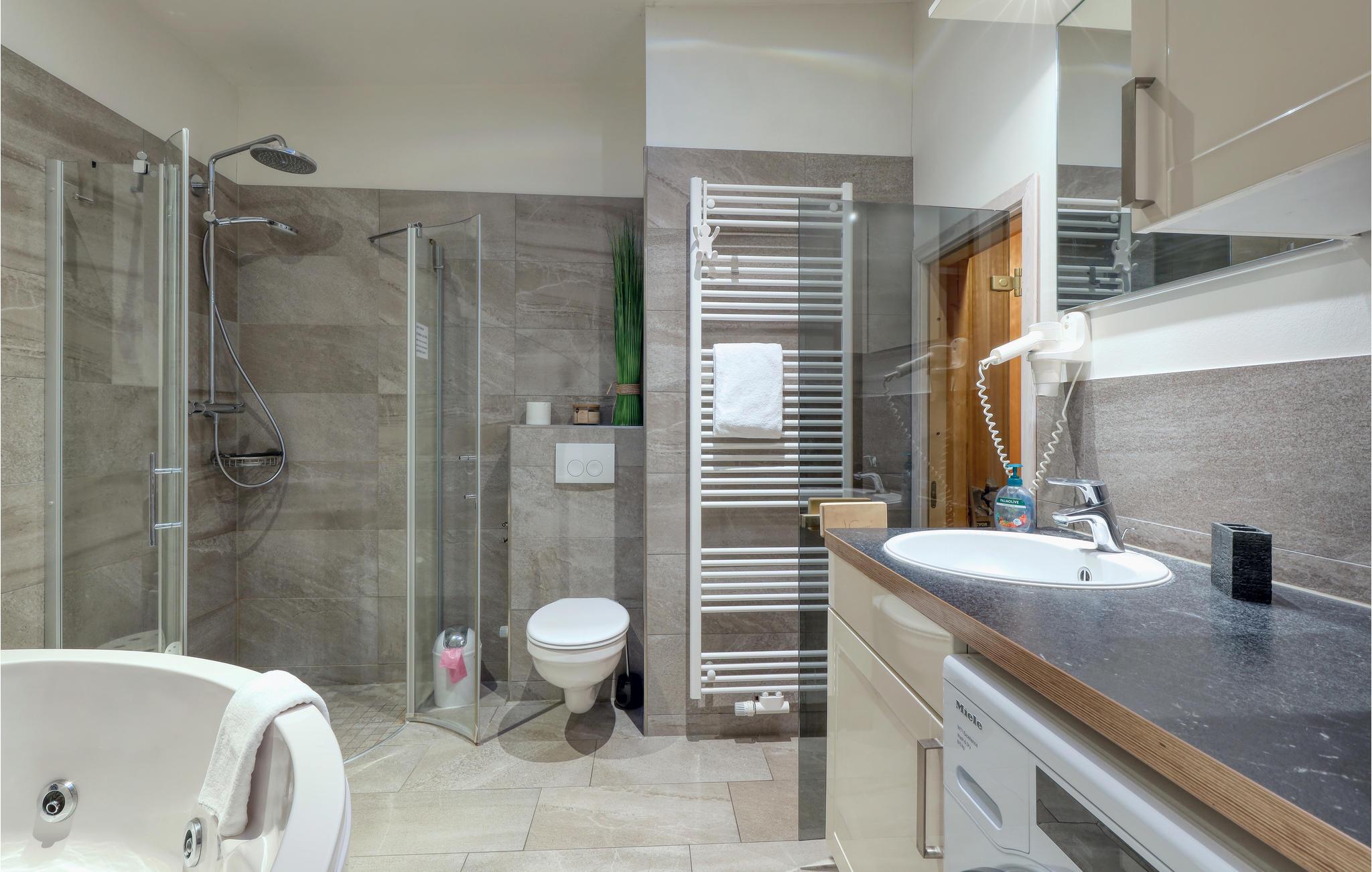 Badezimmer (nr. 1) - WC. Warmes und kaltes Wasser. Dusche und Badewanne