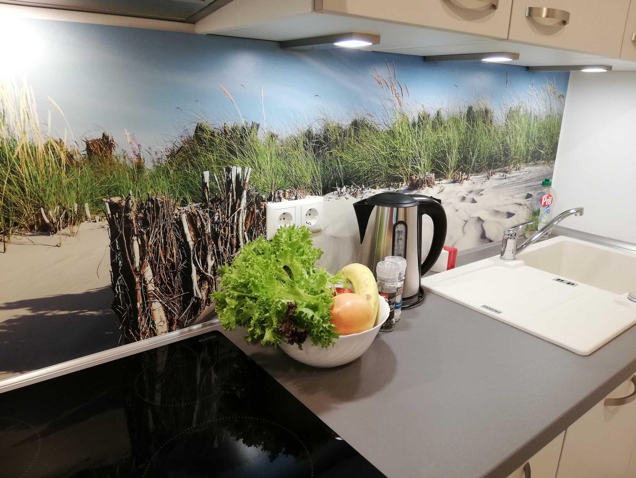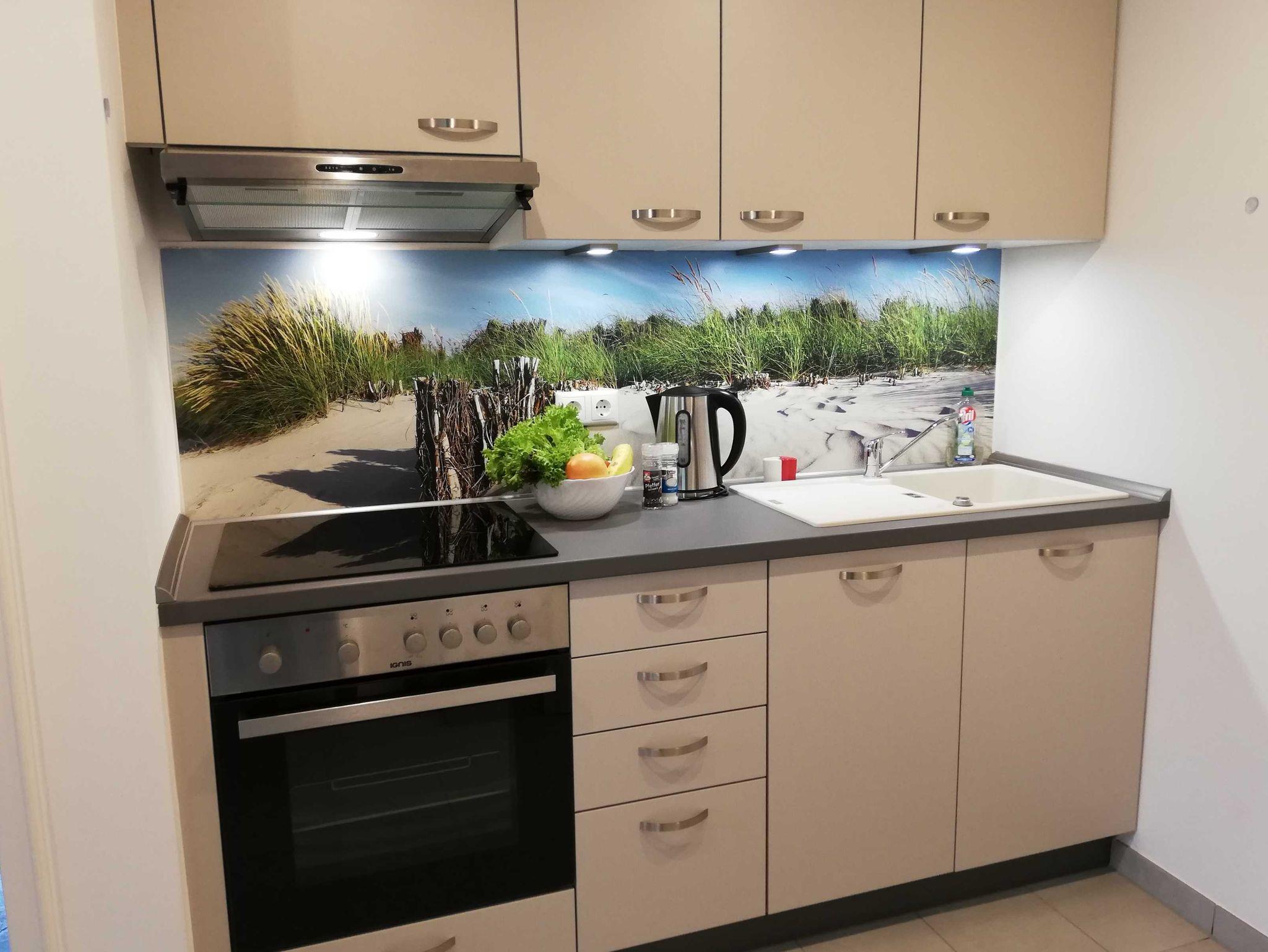 Die gemütliche Ferienwohnung Odin mit ca. 50m² Wohnfläche befindet sich in einem kleinen Mehrappartementhaus im Ostseebad Schönhagen. Von hier aus sind es nur knapp 1000m zum Ostseestrand. Die Parterre Wohnung für 2 Personen und maximal 1 Kleinkind verfügt über ein helles Wohnzimmer mit einer Couch und Essbereich, ein modernes Schlafzimmer mit einem Doppelbett, eine Küchenzeile im Eingangsbereich und ein Bad mit ebenerdiger Dusche, WC und einem Waschtrockner. Ein Kinderreisebett ist (nach Rücksprache) ebenfalls vorhanden. Dazu gibt es eine kleine, möblierte Terrasse zur Westseite, die vom Wohnzimmer aus zu erreichen ist. Hier können Sie einen schönen Sommertag ausklingen lassen. Ein reservierter PKW-Stellplatz, eine abschließbare Fahrradunterstellmöglichkeit sowie WLAN steht den Gästen ebenfalls zur Verfügung.