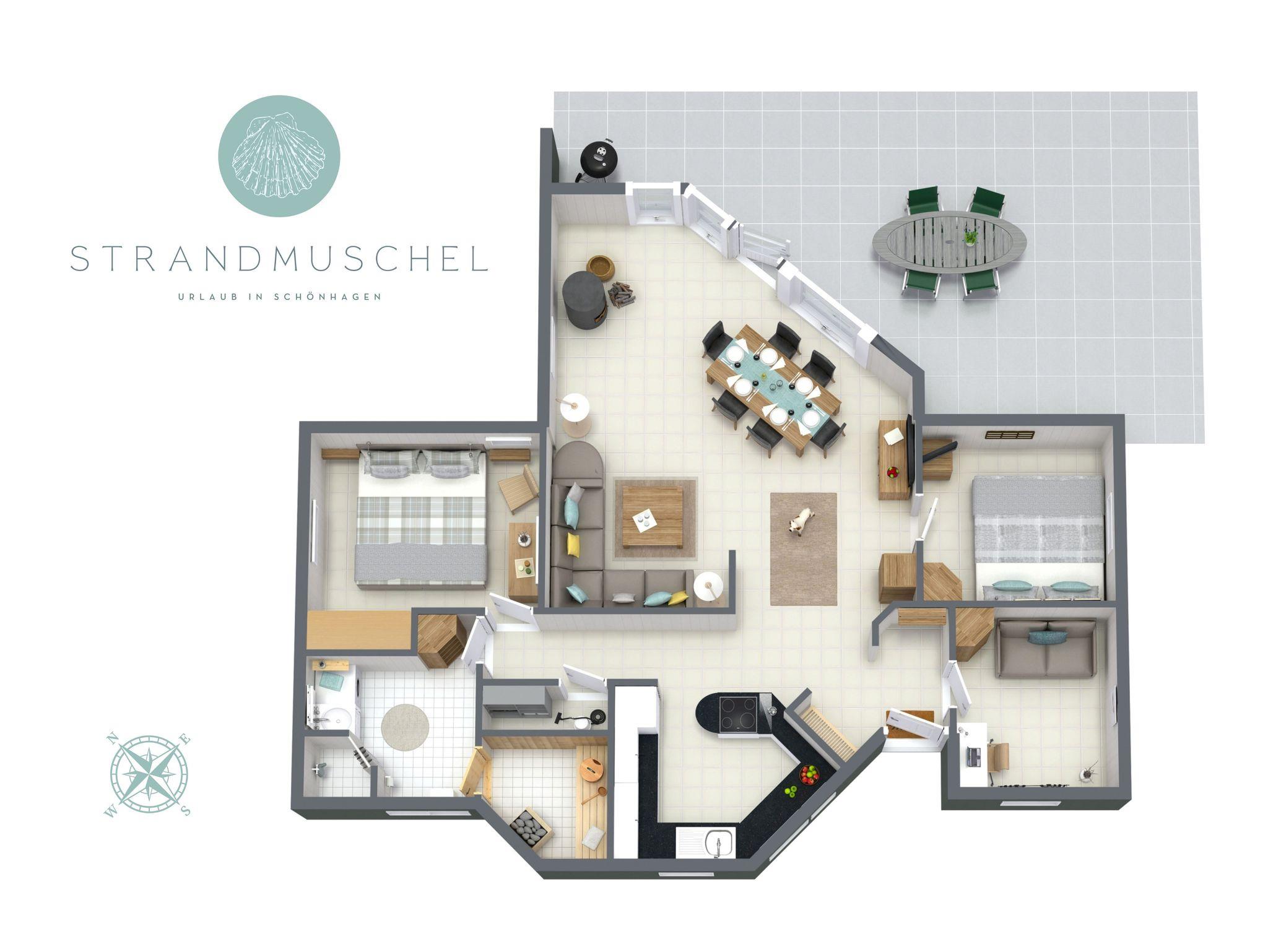 Im Ferienhaus Strandmuschel erwartet Sie ein geräumiges Wohnzimmer mit einer einladenden Sitzgruppe, einem Esstisch und einem behaglichen Kamin. Darüber hinaus stehen zwei Schlafzimmer mit jeweils einem Doppelbett (180 x 200 und 160 x 200) zur Verfügung. Ein weiteres Zimmer bietet einen Rückzugsort und kann dank eines hochwertigen Schlafsofas (140 x 200) auch als zusätzliches Schlafzimmer genutzt werden. Eine offene Küche sowie ein Badezimmer mit Dusche/WC und einer angrenzenden Sauna vervollständigen das Angebot. Zwei teilweise überdachte Terrassen und der großzügige eingezäunte Garten bieten viel Platz im Freien für Mensch und Tier. Ein PKW-Stellplatz auf dem Grundstück sowie ein abschließbarer Fahrradschuppen sind ebenfalls vorhanden. Schnelles Internet via Glasfaser.