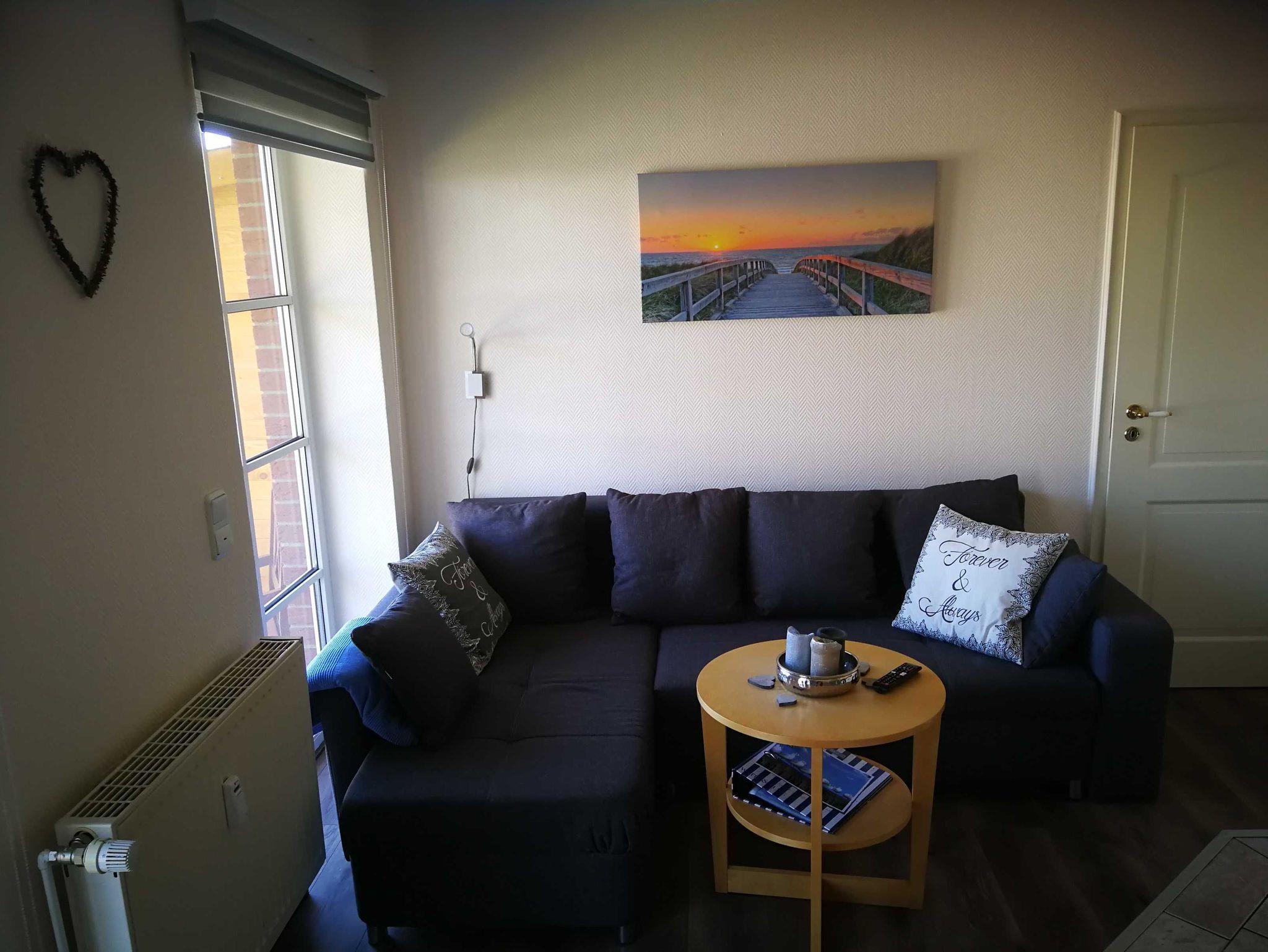Die 2-Zimmer-Ferienwohnung Küstenliebe ist mit seinen ca. 40m² Wohnfläche für 2 Personen geeignet und liegt in einer kleinen Mehrappartementanlage in der Nähe der Reha-Klinik, ca. 1000 m vom Strand entfernt. Das Wohnzimmer ist ausgestattet mit einer Schlafcouch und einem Essplatz. Die neue Küchenzeile verfügt über ein Ceranfeld mit 4 Kochfeldern, einem Backofen und einem Kühlschrank mit Gefrierfach. Außerdem gibt es ein Schlafzimmer mit einem Boxspringbett (160x200 cm, einteilige Matratze) und ein Bad mit Dusche/WC. Kostenfreies WLAN steht den Gästen in der Ferienwohnung zur Verfügung. Die komplett eingezäunte (90cm Zaunhöhe), möblierte Terrasse liegt zur Süd-Ost-Seite, auf dieser kann man wunderbar ein schönes Frühstück genießen. Zur Wohnung gehört ebenfalls ein reservierter PKW-Stellplatz direkt vorm Haus.