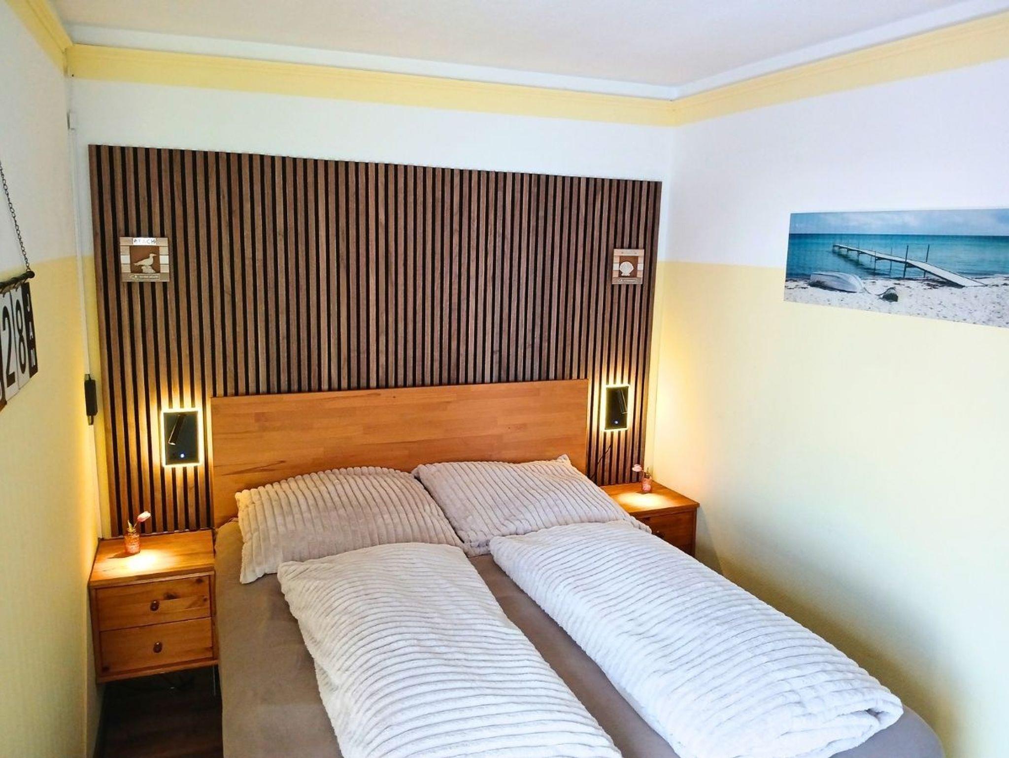 Die 2-Zimmer Wohnung Küstenliebe liegt im Parterre und hat ca. 40 m² Wohnfläche, bestehend aus: Wohnzimmer mit Schlafcouch (Liegefläche ca. 140x200 cm - einteilig), Esstisch mit 2 Stühlen und Bank, Smart-TV, CD-Radio, kostenfreies WLAN; Schlafzimmer mit Boxspringbett (160x200 cm, einteilige Matratze), Kleiderschrank; Küchenzeile im Wohnzimmer mit 4-Feld-Ceranfeld, Backofen, Kühlschrank mit Gefrierfach, Mikrowelle, Kaffeemaschine, Wasserkocher; Dusche/WC; eingezäunte, möblierte Terrasse zur Süd-Ost-Seite; PKW-Stellplatz; Nichtraucher!