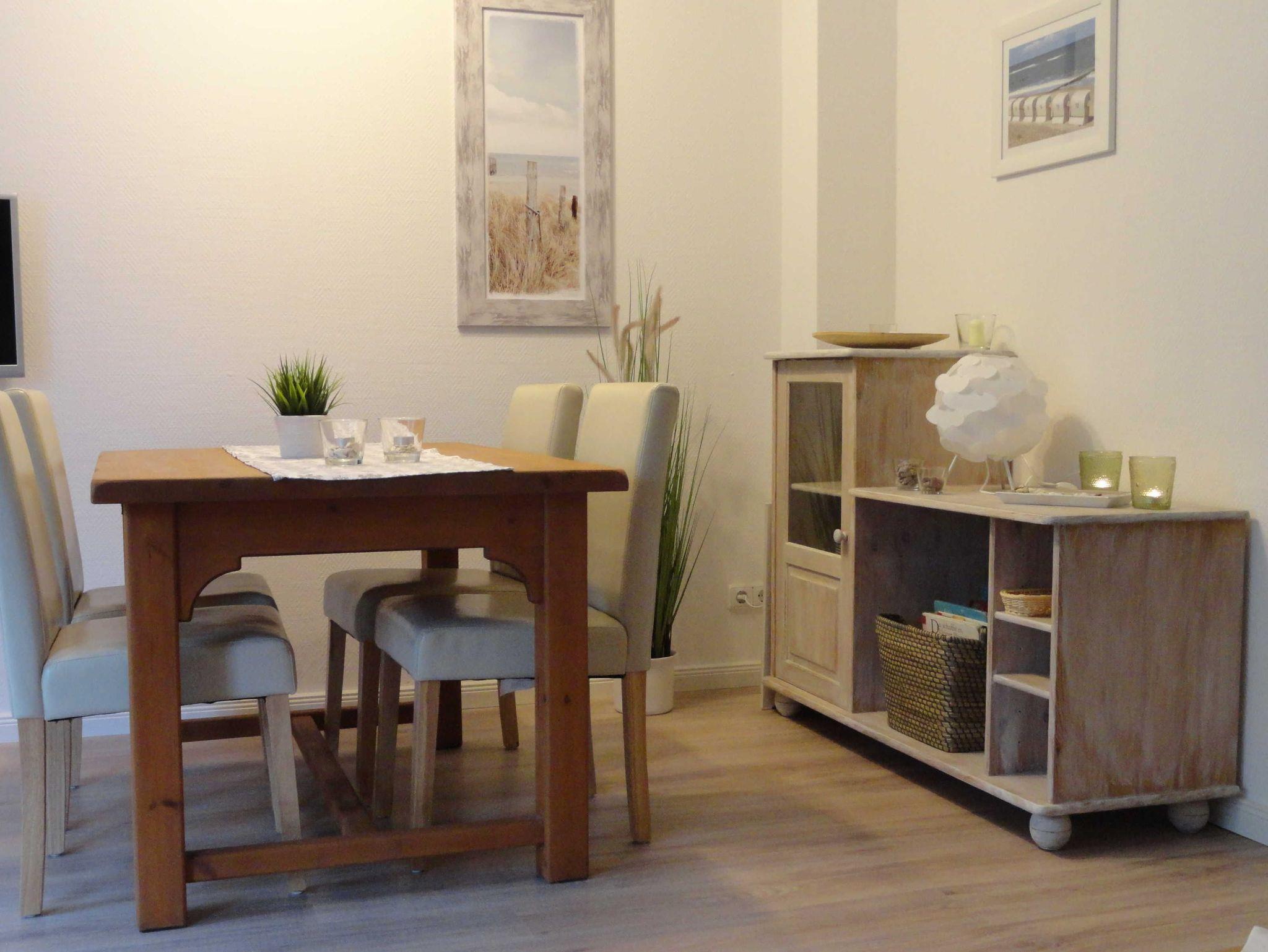 Die 2-Zimmer-Ferienwohnung Strandglück hat ca.46qm Wohnfläche für max. 3 Personen und besteht aus: Wohnzimmer mit Couchgarnitur (Schlafcouch für 1 Person) und Essbereich; Schlafzimmer mit Doppelbett (2x90x200 cm) und Kleiderschrank; Küchenzeile im Flurbereich mit 4-Kochzonen-Ceranfeld, Minibackofen und Geschirrspüler; Bad mit Wanne (Duschmöglichkeit) und WC; möblierte Terrasse zur Süd-Ostseite und Balkon zur Westseite; PKW-Stellplatz; abschließbare Fahrradunterstellmöglichkeit, kostenfreies WLAN in der Wohnung.
