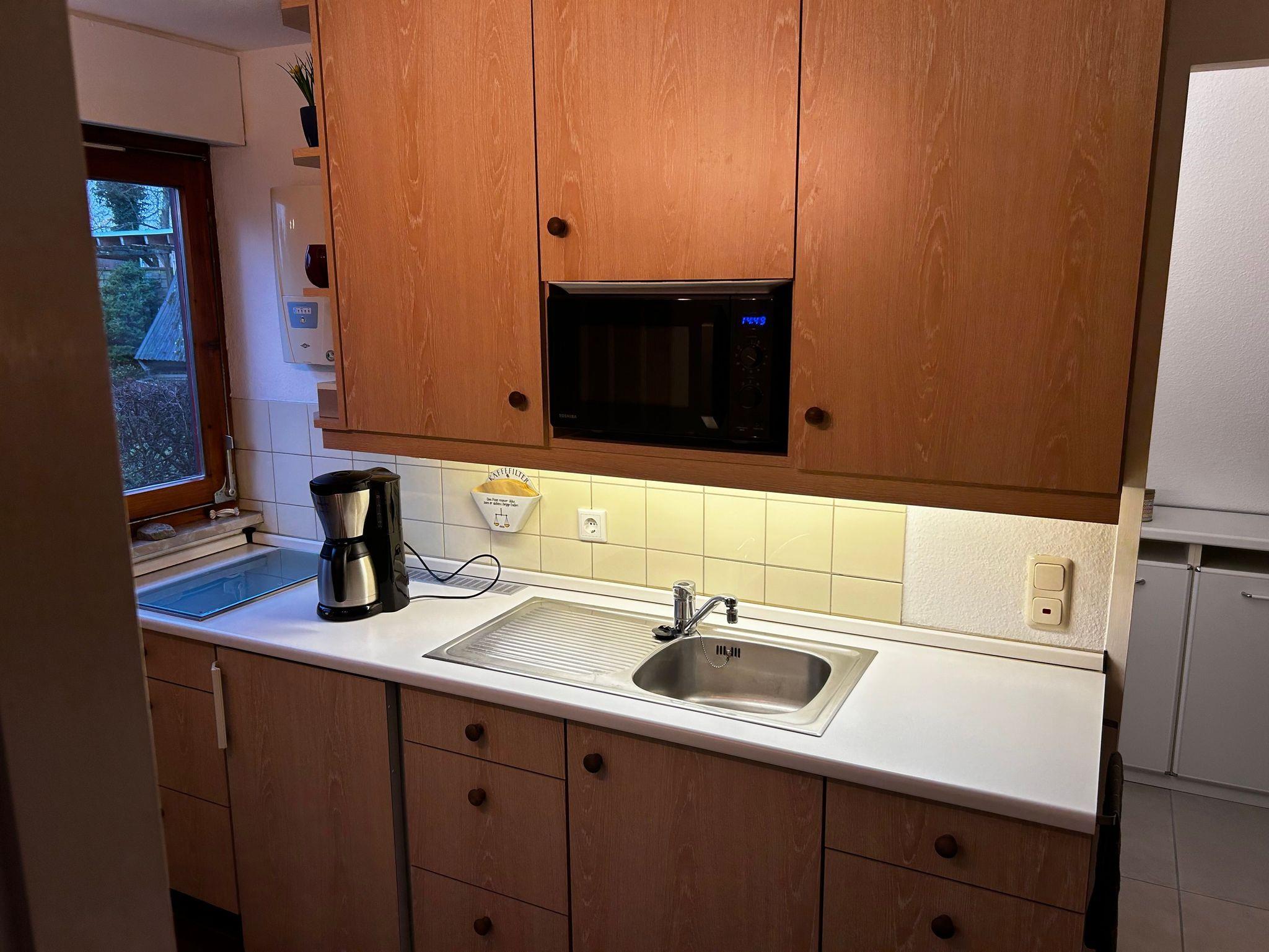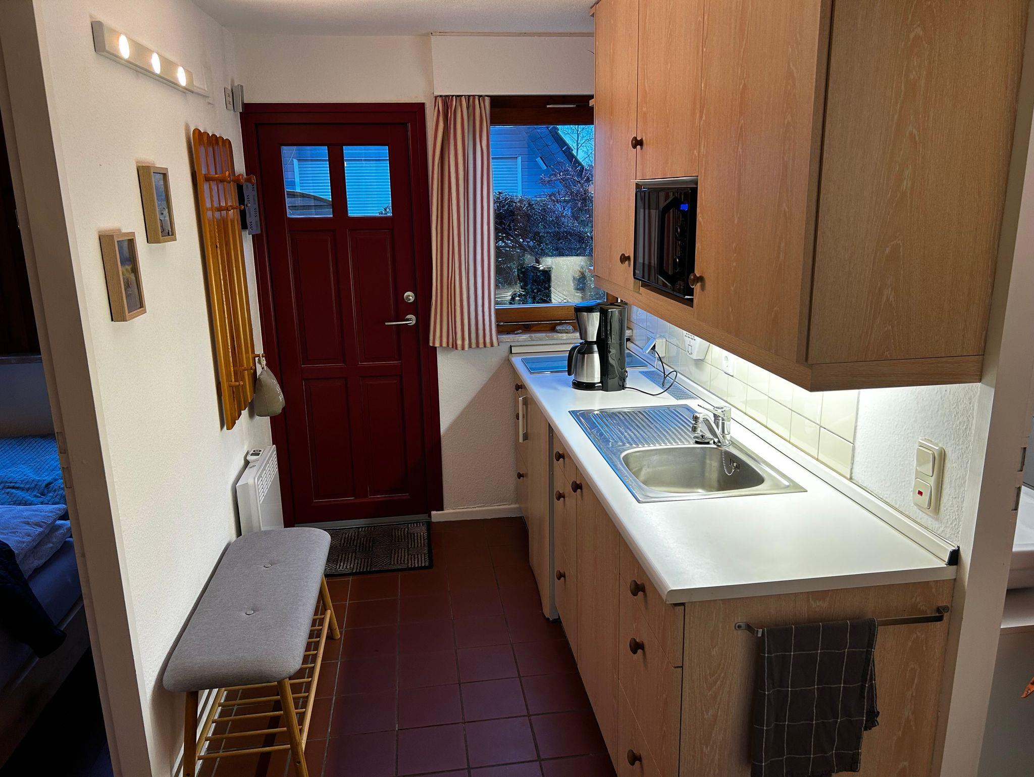 • Küchenzeile im Eingangsbereich mit Airfryer (ohne Backofen und Geschirrspüler)