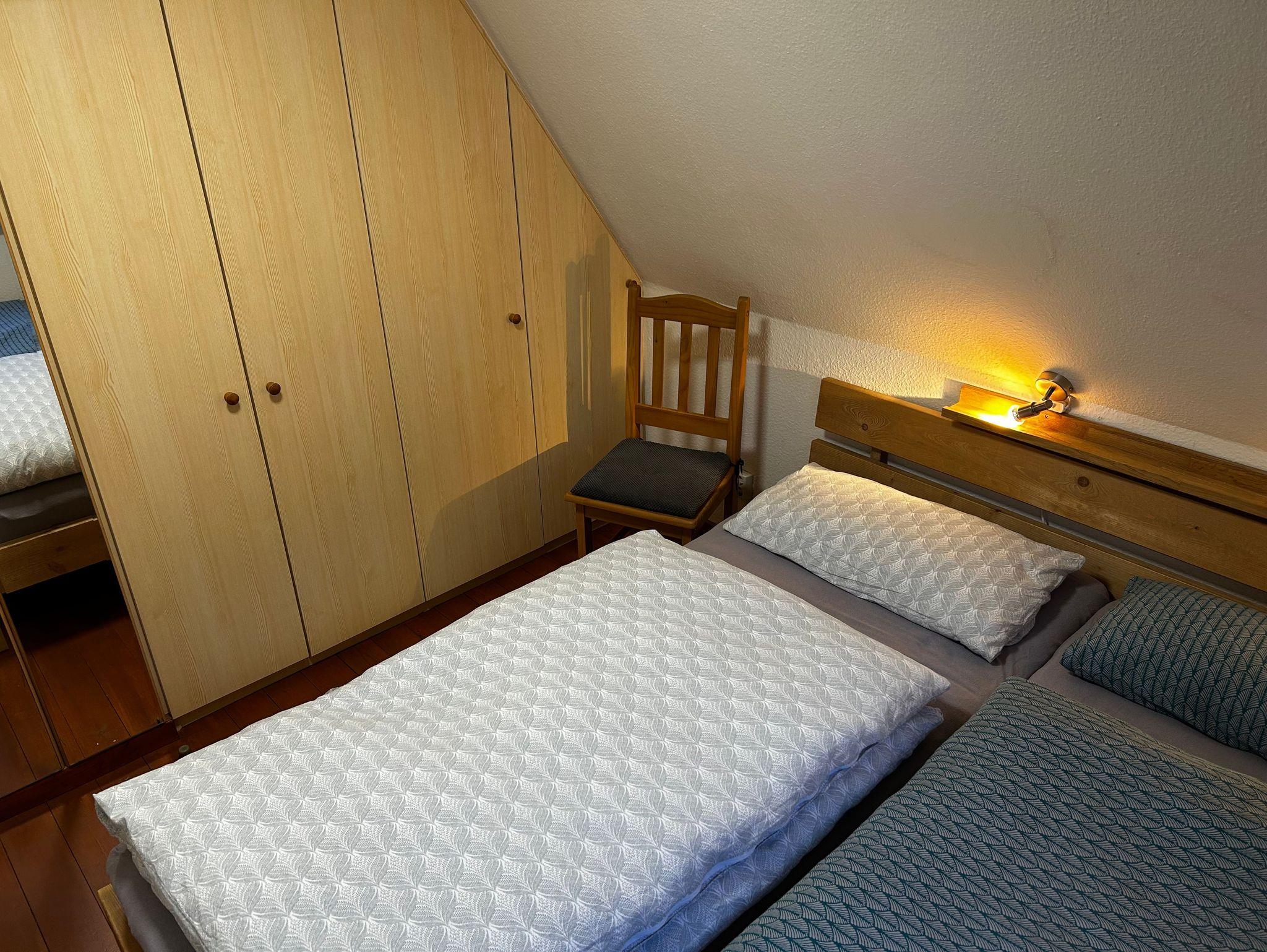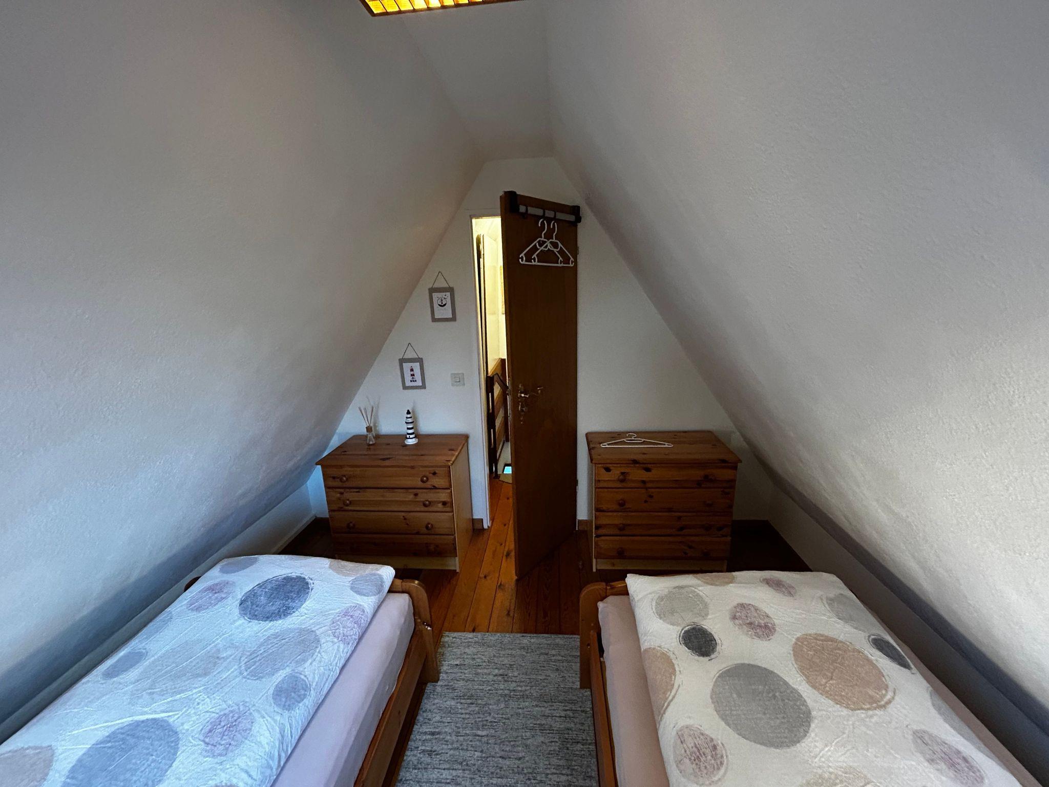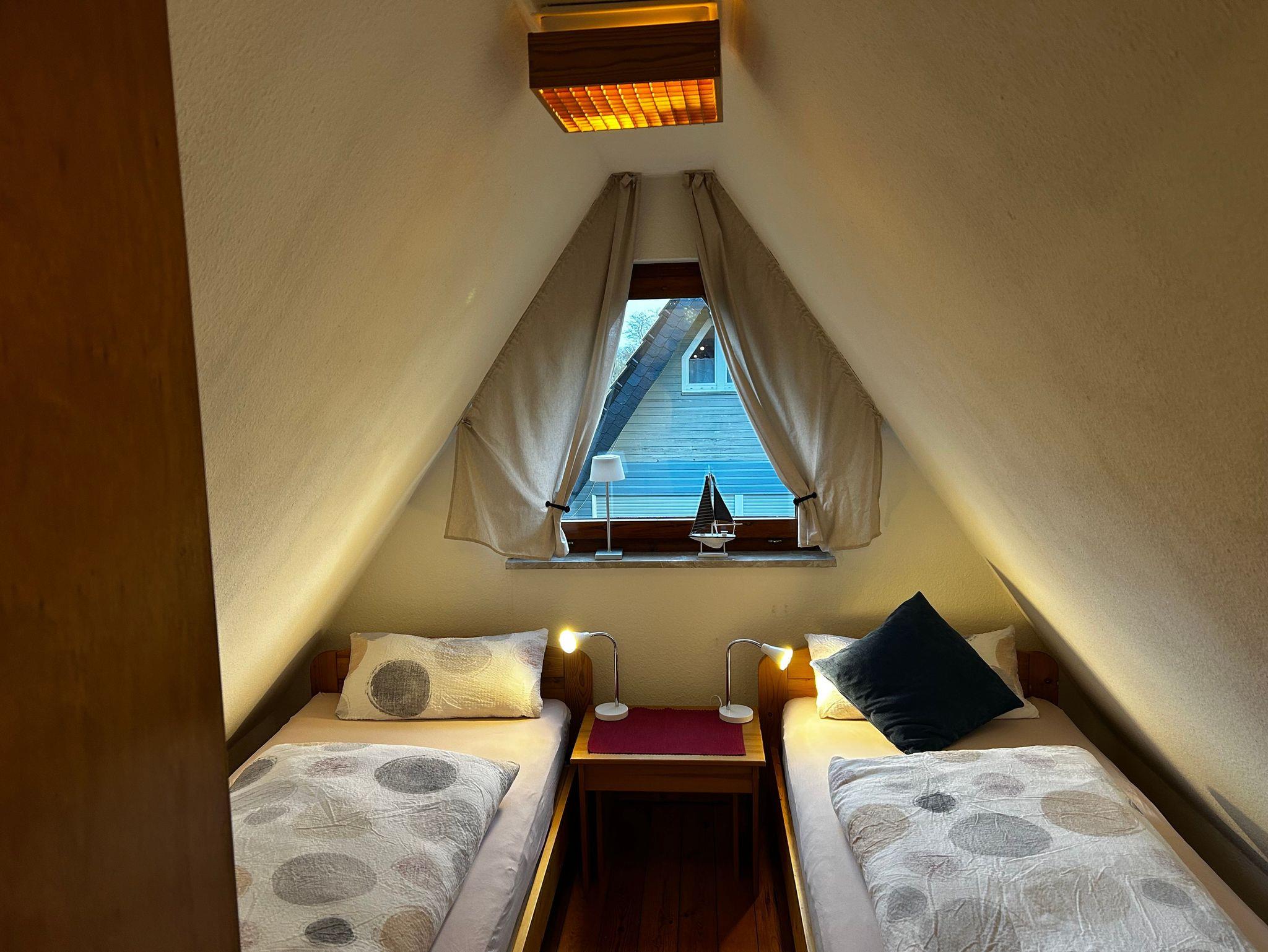 • Schlafzimmer mit zwei Einzelbetten im DG