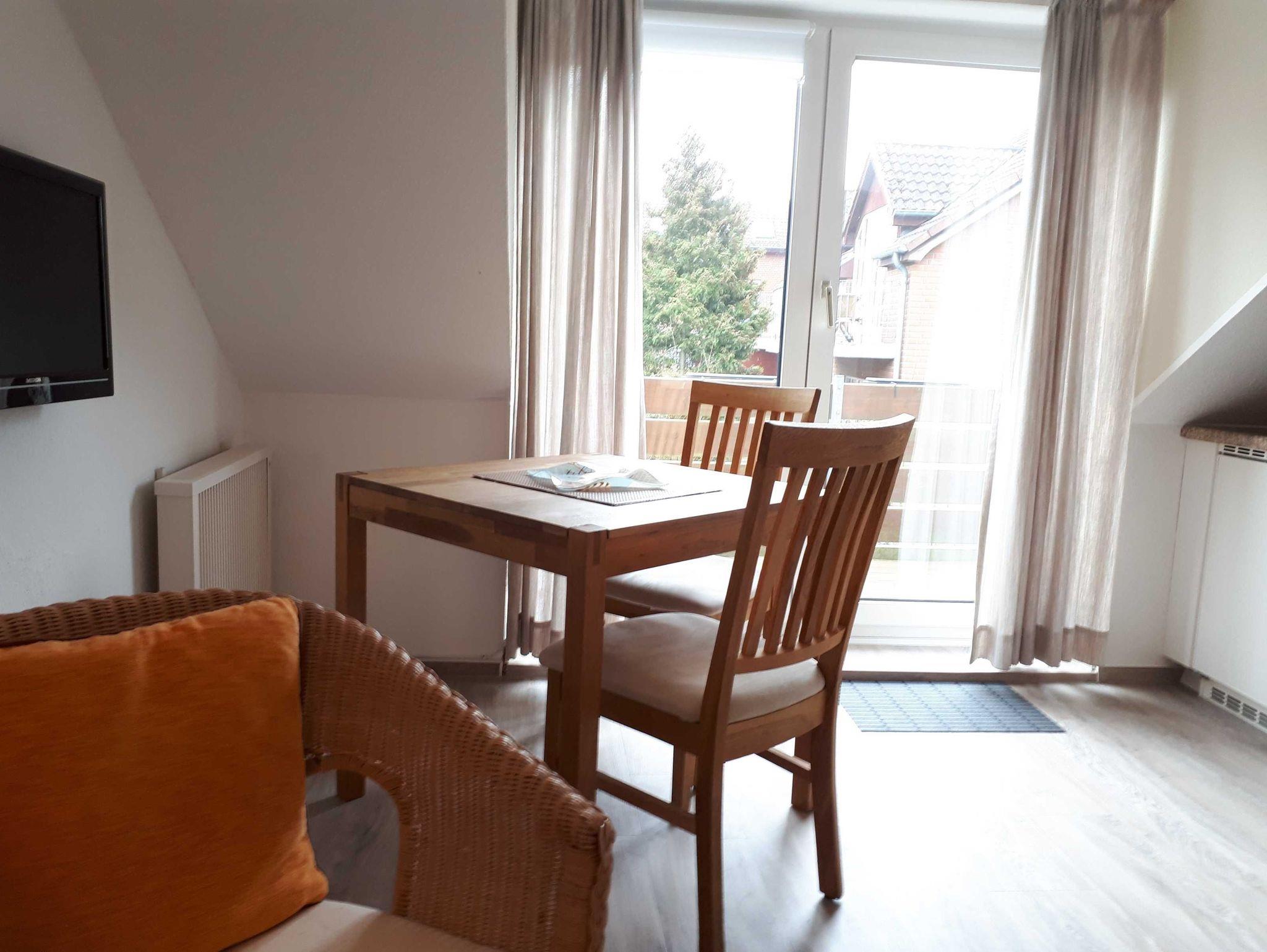 Die Ferienwohnung Boje 2 liegt im Obergeschoss einer kleinen Wohnanlage und bietet ca. 35qm Wohnfläche für 2 Personen. Die Wohnung besteht aus einem Wohnzimmer mit Essbereich und einer neuen Küchenzeile, ein Schlafzimmer mit einem Doppelbett und Dusche/WC. Außerdem verfügt die Wohnung über einen möblierten Südbalkon, auf der man den ganzen Tag die Sonne genießen kann.