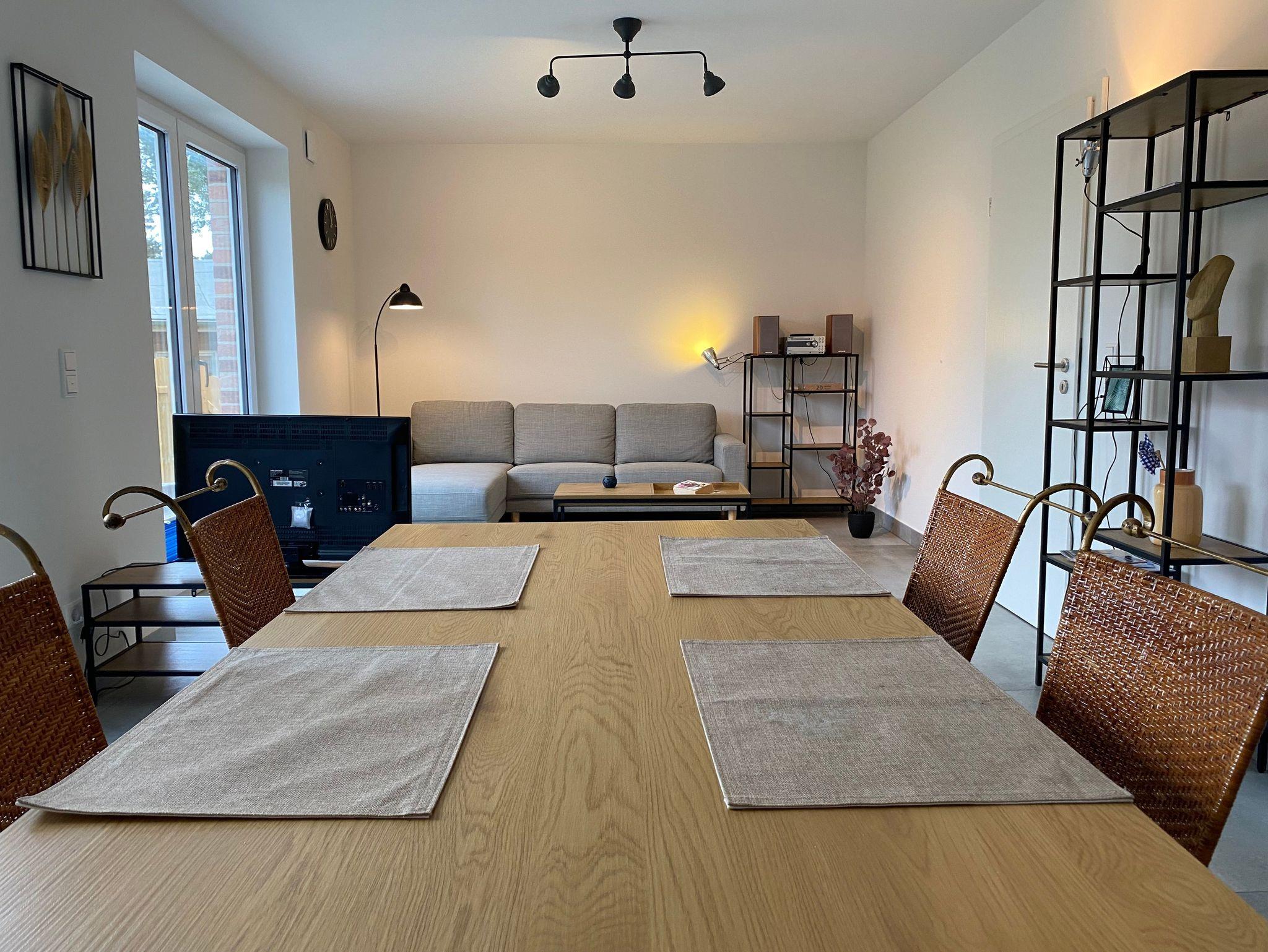 Der kombinierte Wohn-/Essbereich ist ausgestattet mit einer gemütlichen Couch sowie einem Essplatz.