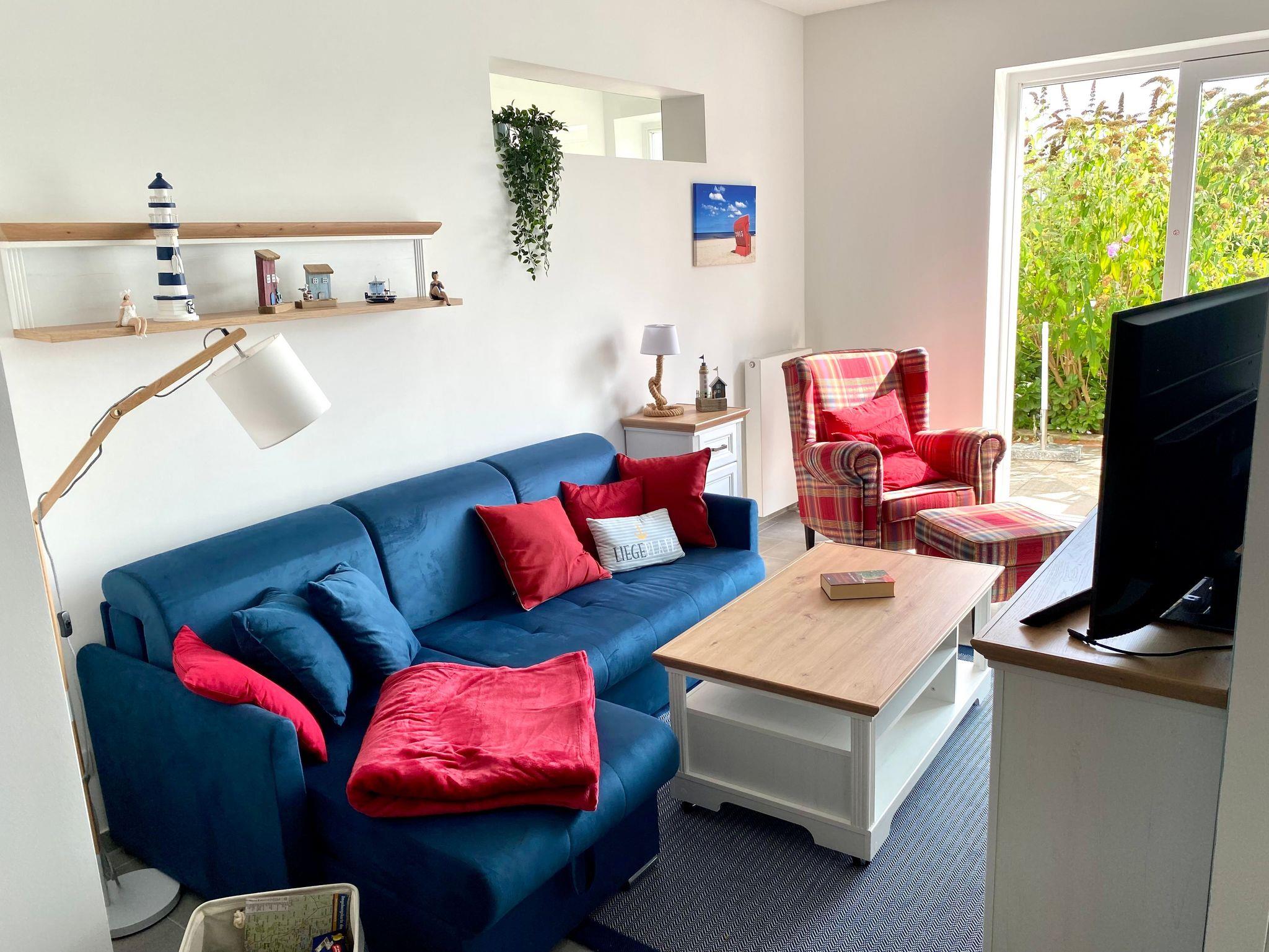 Die 1-Zimmer-Ferienwohnung mit ca. 53 m² Wohnfläche ist aufgeteilt in: komb. Wohn-/Schlafraum mit Schlafcouch (140cm x 200cm) und Doppelbett (180cm x 200cm/getrennte Matratzen), Kinderbett und Hochstuhl vorhanden; offene Einbauküche mit Essplatz; Bad mit Wanne/Dusche/WC; möblierte Terrasse; kostenfreies WLAN; PKW-Stellplatz; abschließbarer Fahrradraum; Nichtraucher!; Haustier auf Anfrage. Ohne Bett- und Handtuchwäsche.