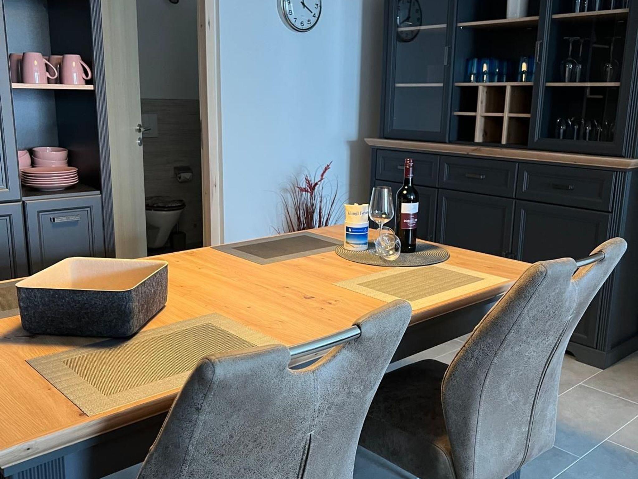 Die neue, voll ausgestattete Einbauküche lädt zum ausgiebigen Kochen ein. Genießen Sie Ihre Mahlzeiten am gemütlichen Esstisch.